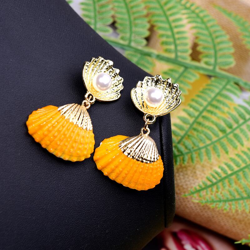 送料無料 MOONGIRLナチュラルシェルダングルピアス女性シミュレートパールステートメントパーティーシックなアレテスジュエリー船 イヤリング 真珠 天然 人工 アクセサリー AE665517580245587