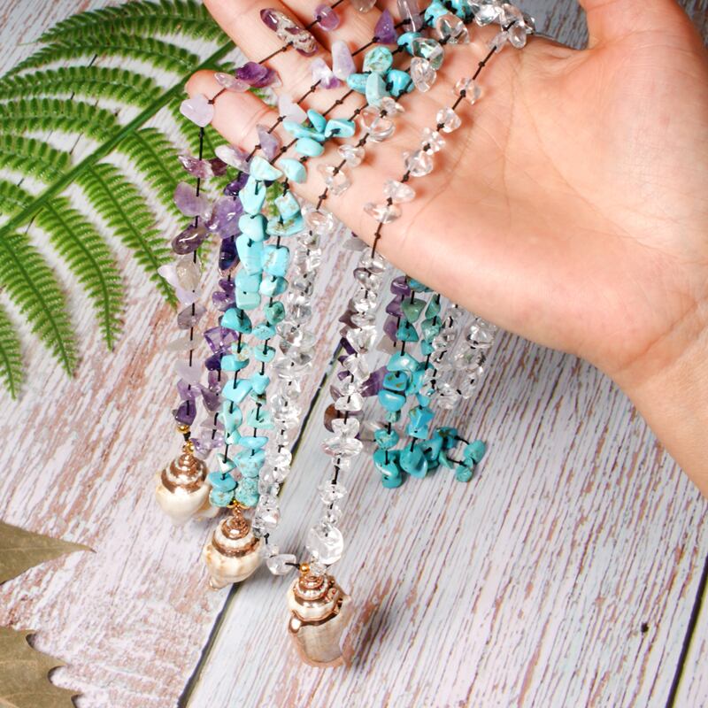 送料無料 MOONGIRLノットナチュラルクリスタルビッグカウリーペンダントネックレスレディースファショントレンディロングシックハンドメイドコリアー発送 レース 天然 アクセサリー AE665519284364741