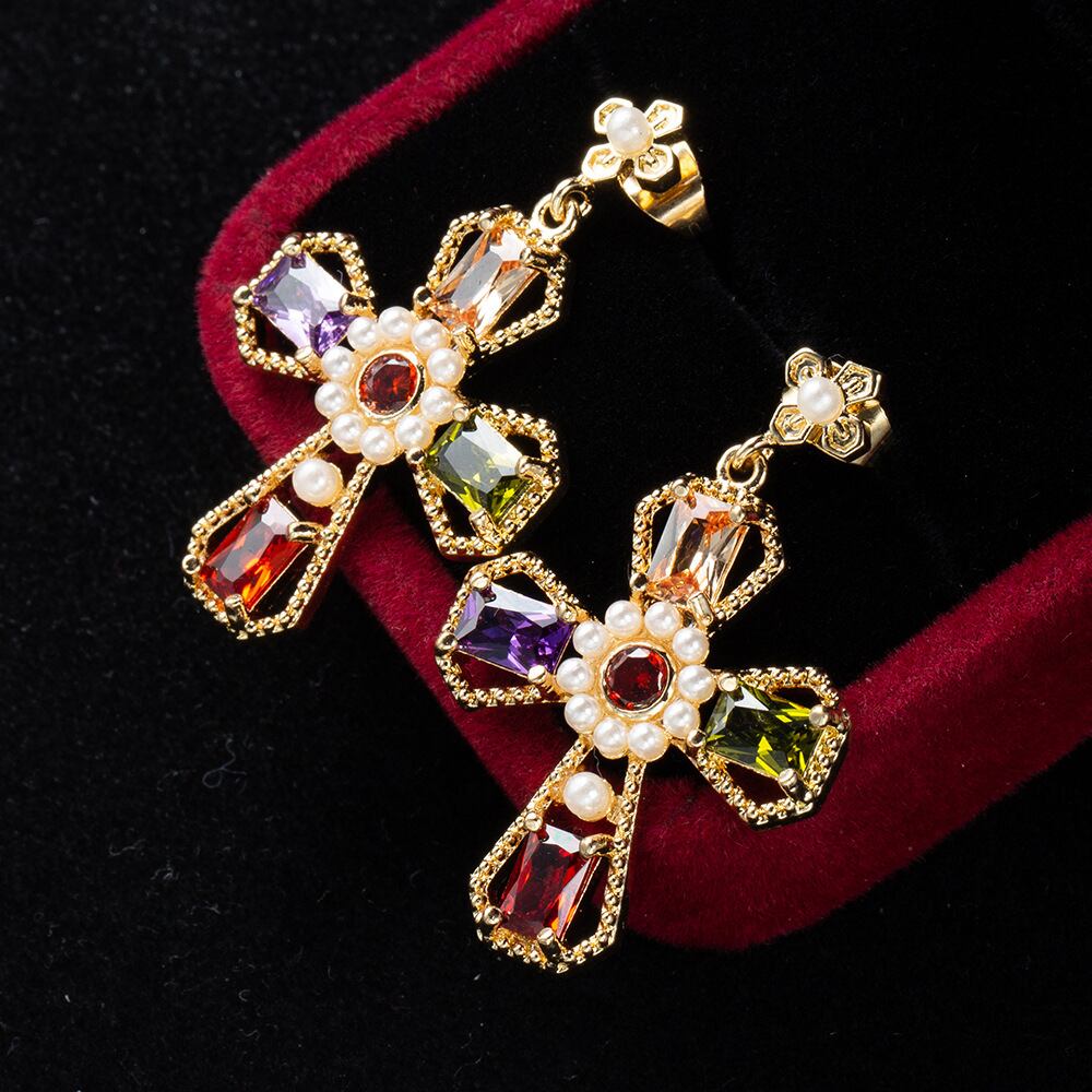 送料無料 LATSビッグクロスパールダングルピアスゴールドカラージルコンピアスレディース2020ジュエリーギフトピアス イヤリング 真珠 リング 指輪 アクセサリー AE332221174199239214