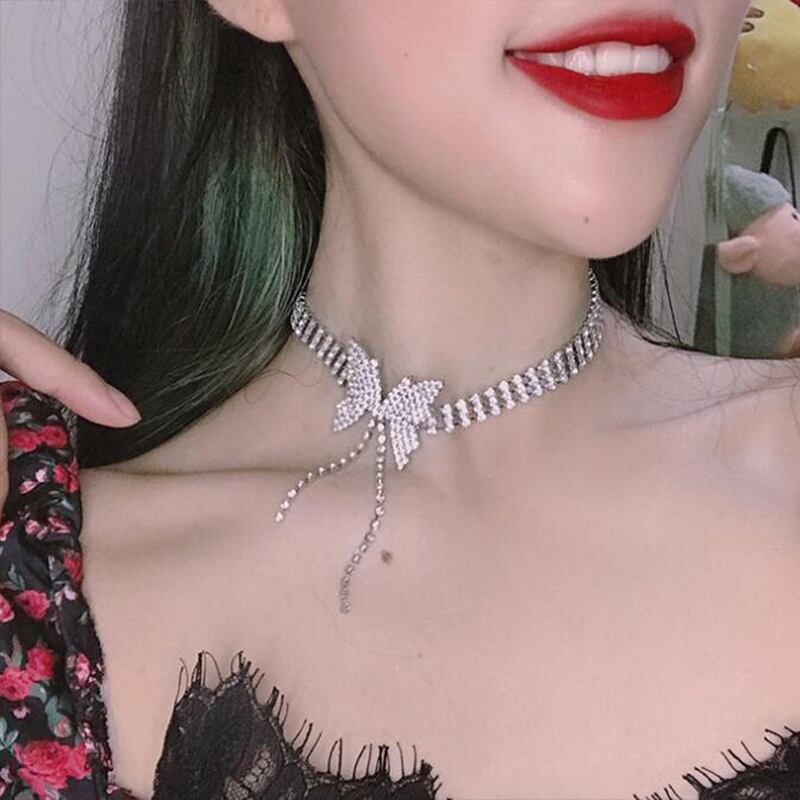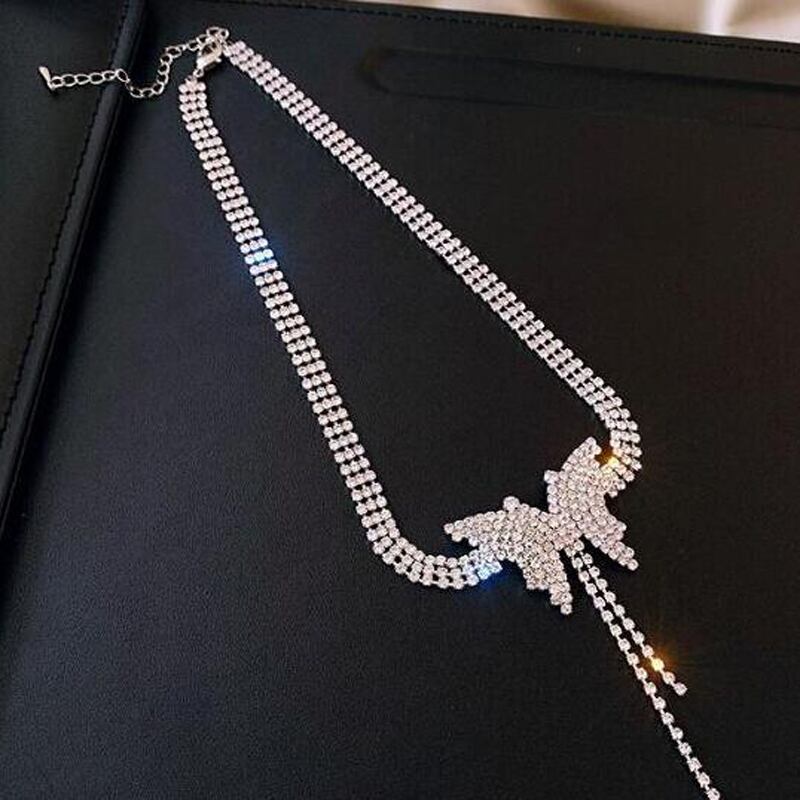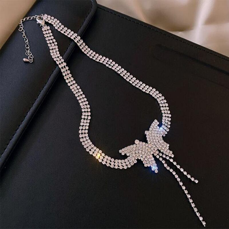 送料無料 LATSフルラインストーンバタフライネックレスシルバーカラーワイルドテル鎖骨チェーンネックレス女性ペンダントジュエリーギフト レース 銀 アクセサリー AE332221193015443816