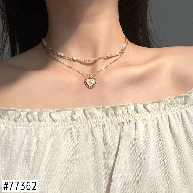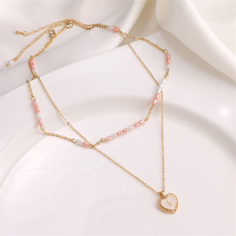 送料無料 LATSスウィートヴィンテージマルチレイヤーパールネックレスレディースゴールドカラーハート型チェーンチョーカーネックレスジュエリー レース 大人ガーリー キュート カジュアル 真珠 ビンテージ アクセサリー AE33222117816758993