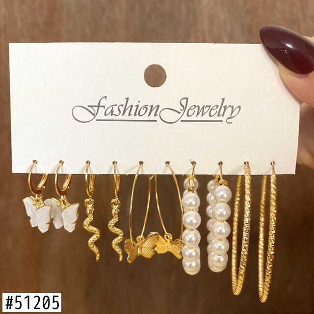 送料無料 LATSトレンディシルバーカラーバタフライフープピアスセットレディースガールズ幾何学的不規則なメタルレジンアクリルイヤリングジュエリー 指輪 銀 アクセサリー AE332221149031928531
