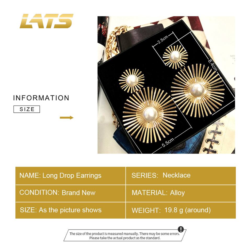 送料無料 LATS誇張されたロングイヤリング女性ビッグパールラウンドダングルイヤリングワイルドサンイヤリングブリンコスジュエリー 真珠 指輪 アクセサリー AE332221134639855116