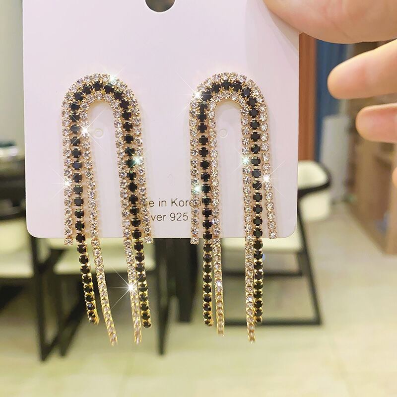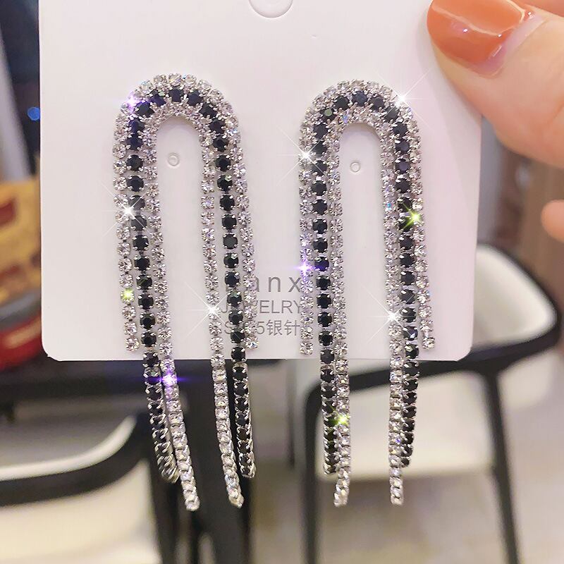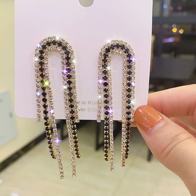 送料無料 LATSテルラインストーンスタッドピアスロングクローチェーンピアス女性パーティー誇張されたイヤリングギフトブリンコスジュエリー 指輪 アクセサリー AE332221151291451380