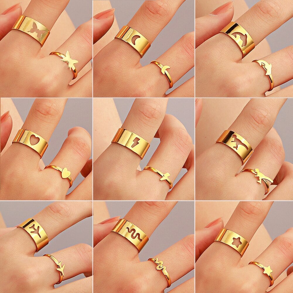 送料無料 LATSトレンディなゴールド航空機恐竜ライトニングバタフライリング女性男性恋人カップル友情オープンリングセット2021ジュエリー 指輪 アクセサリー AE33222112671252155
