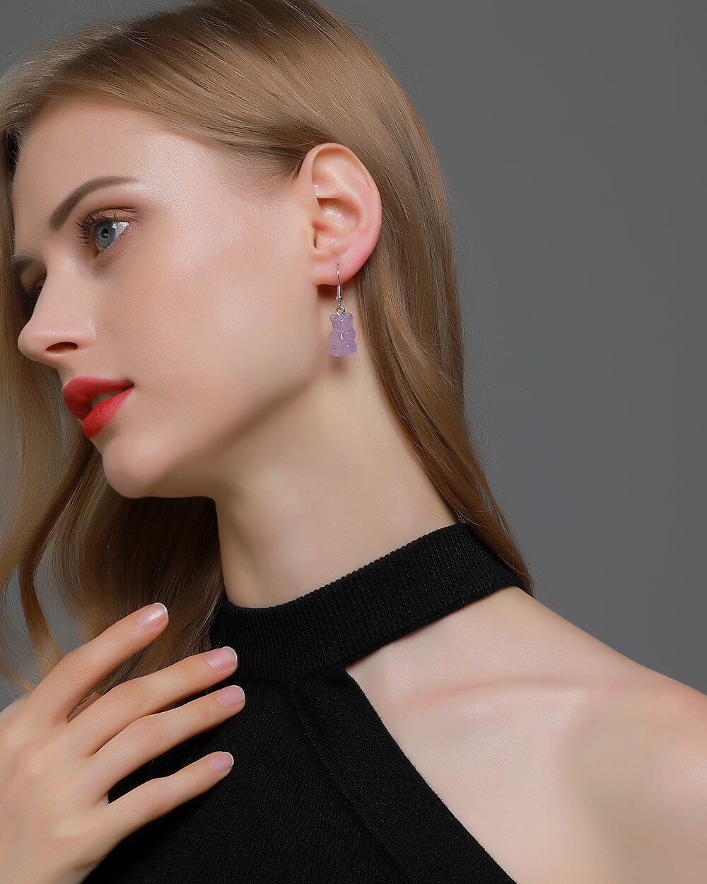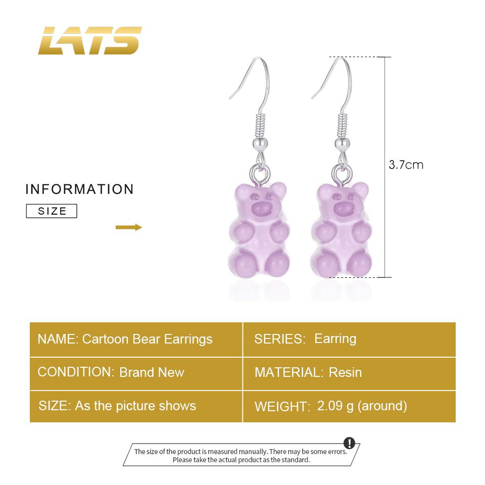 送料無料 LATSレトロカラー漫画クマイヤリングWoemnレジンキャンディーカラーダングルイヤリング2020イヤリングジュエリーガールギフト 指輪 アクセサリー AE332221168194840127