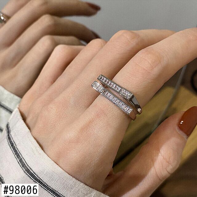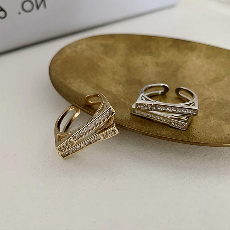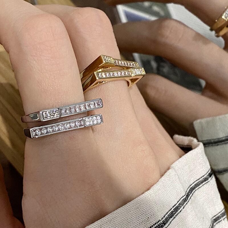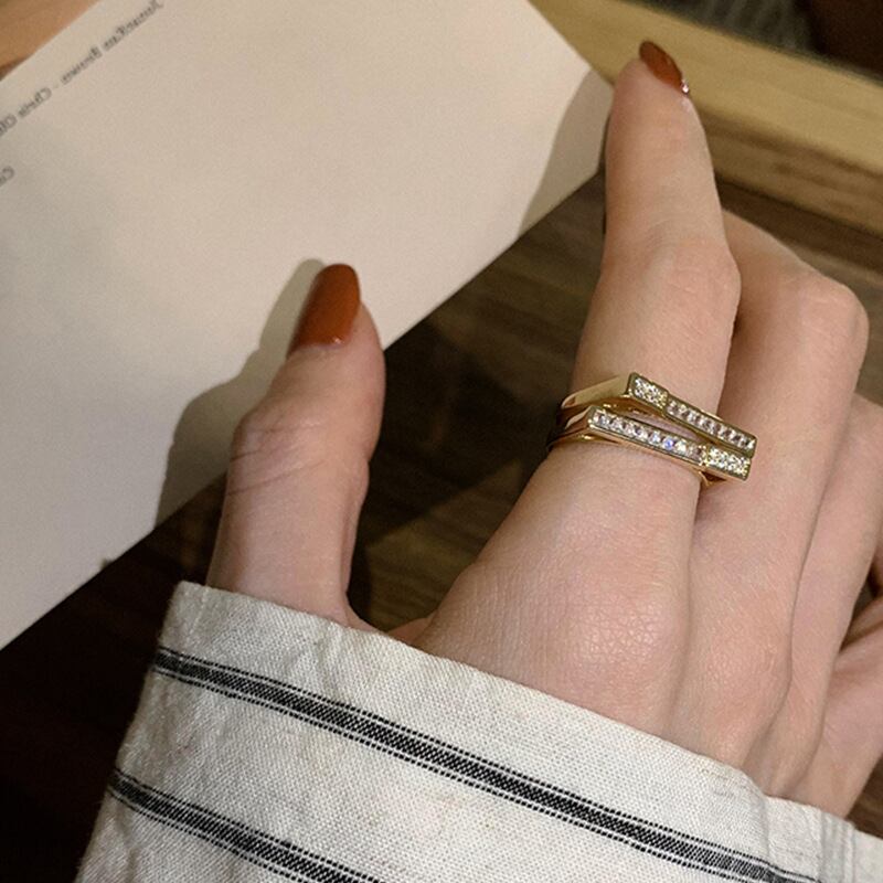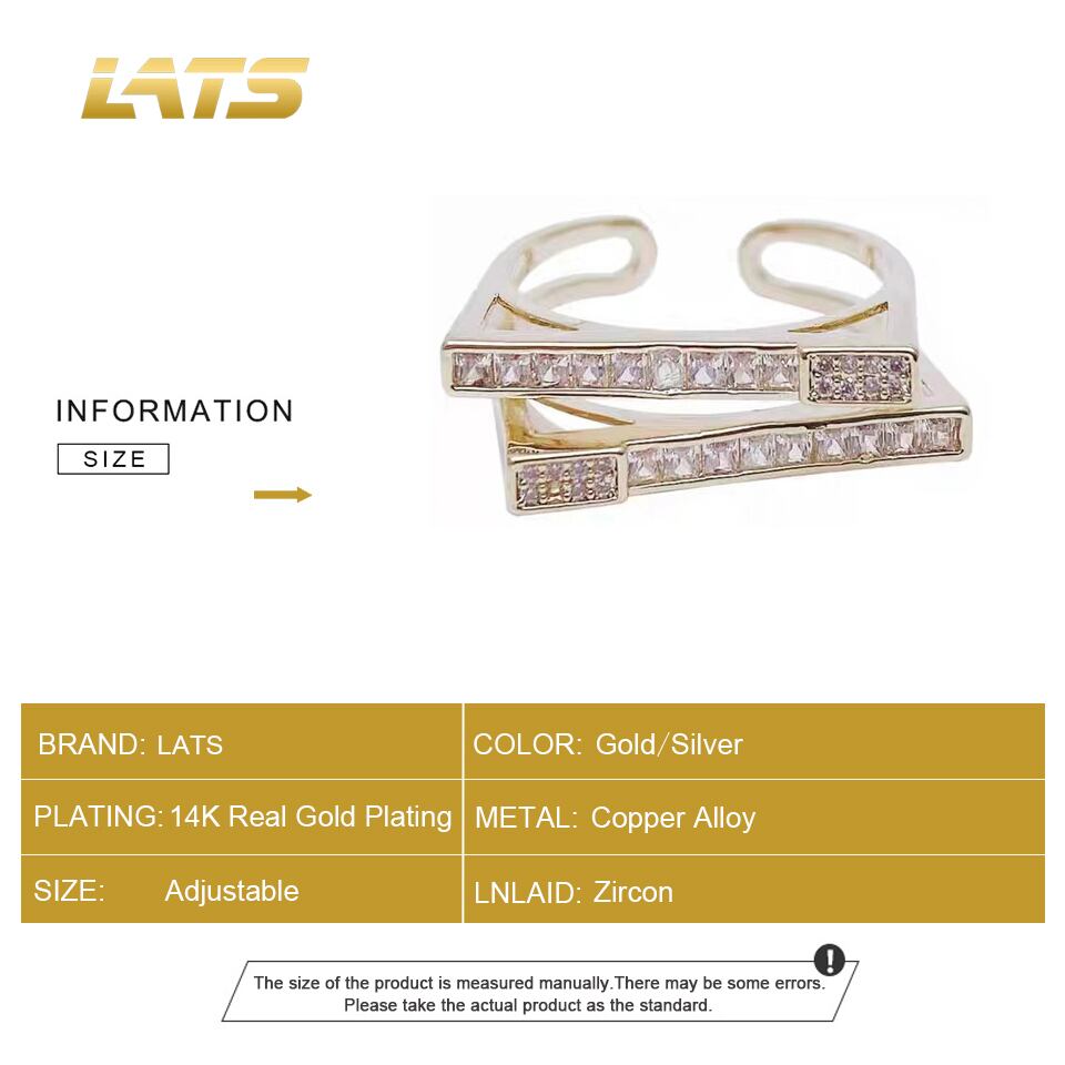 送料無料 LATSライトラグジュアリーゴールドメッキジルコンダブルレイヤー幾何学リングレディースシンプルインデックスフィンガーリングジュエリー 指輪 アクセサリー AE332221186054007494