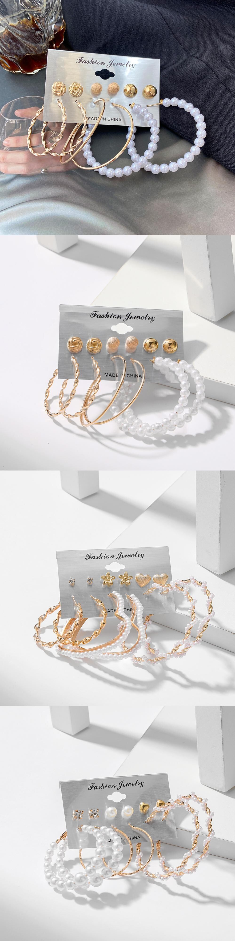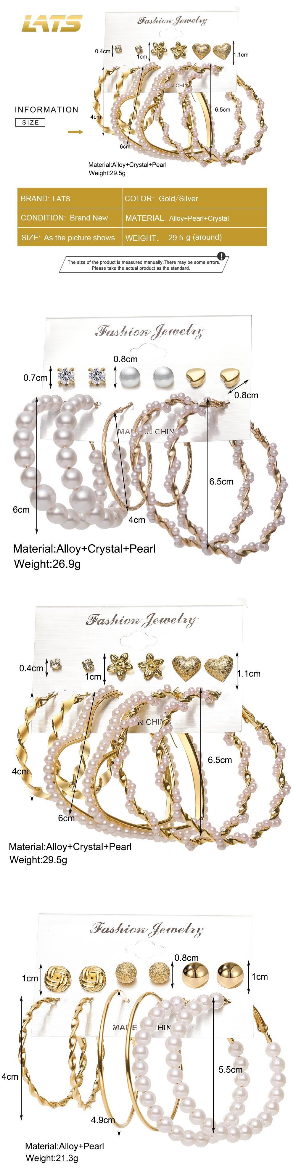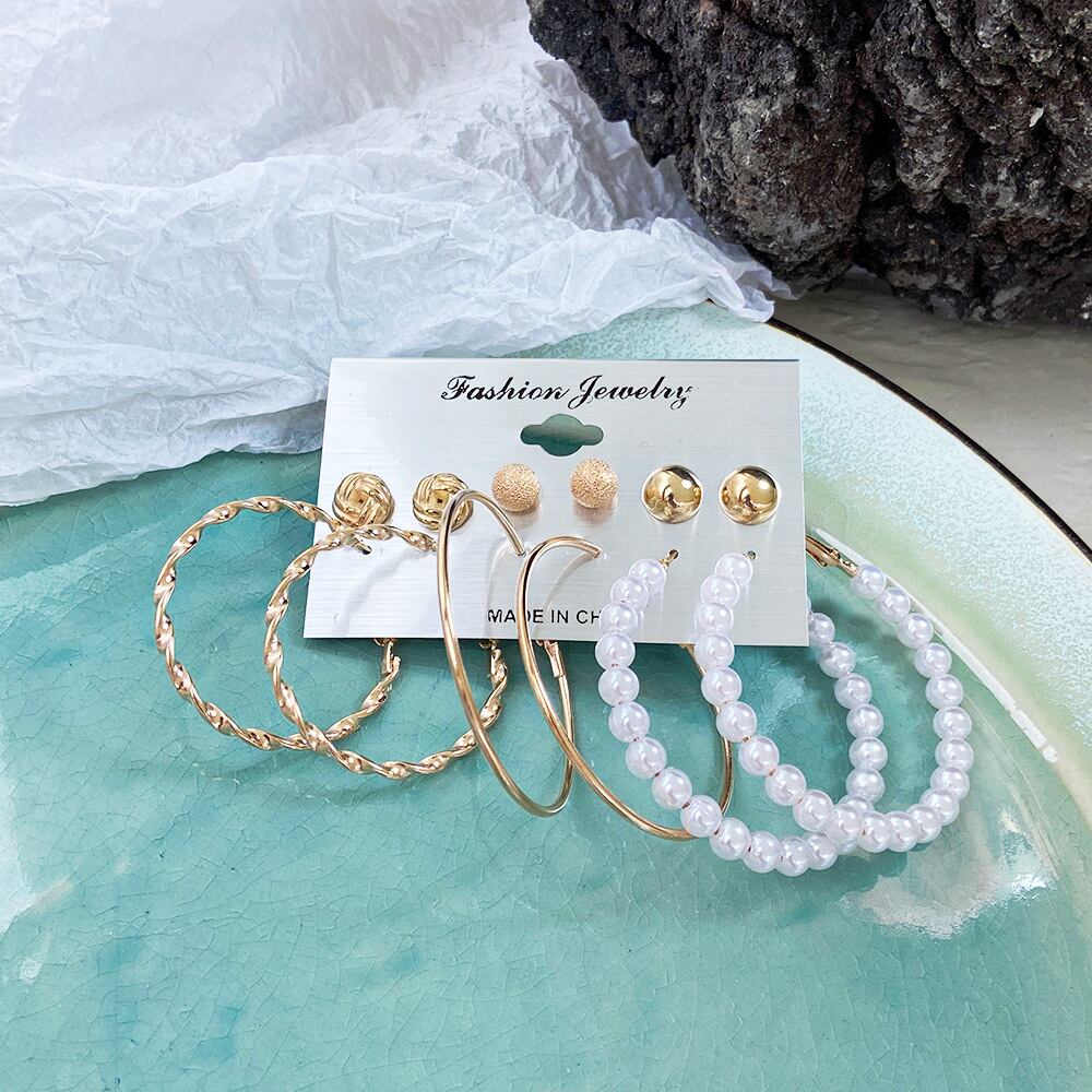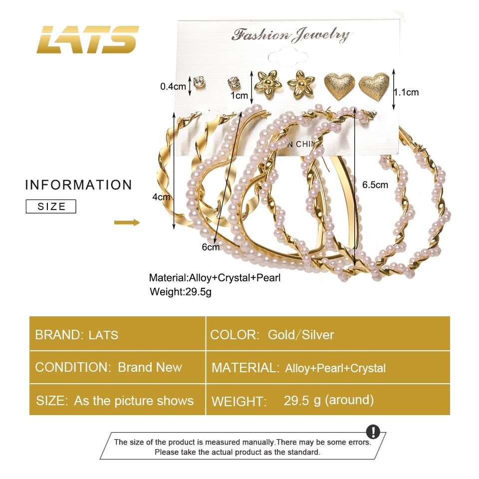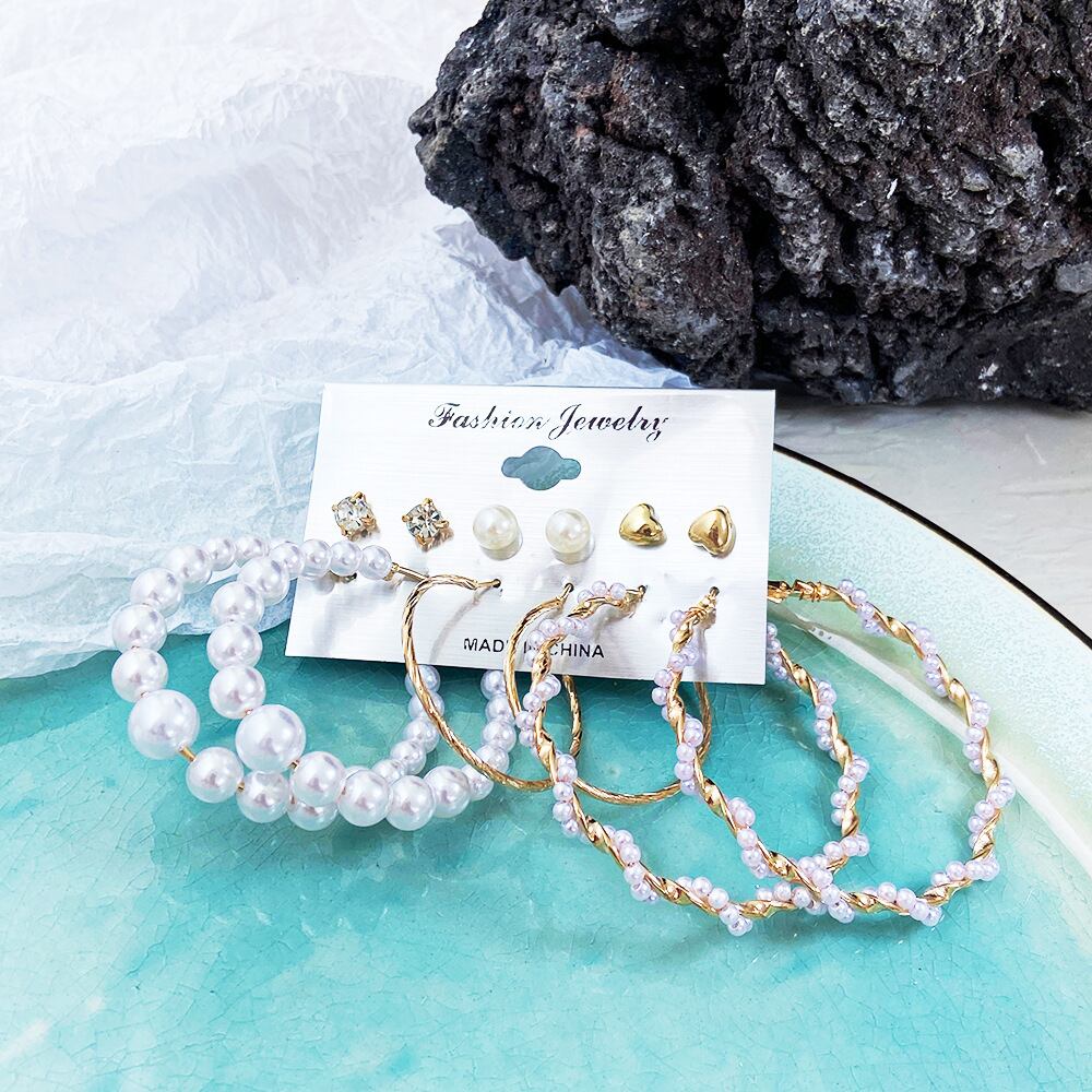 送料無料 LATS6ピースレディースイヤリングセットビッグサークルパールピアスレディースクリエイティブヴィンテージフープピアスブリンコスジュエリー 真珠 指輪 ビンテージ アクセサリー AE332221132629843420