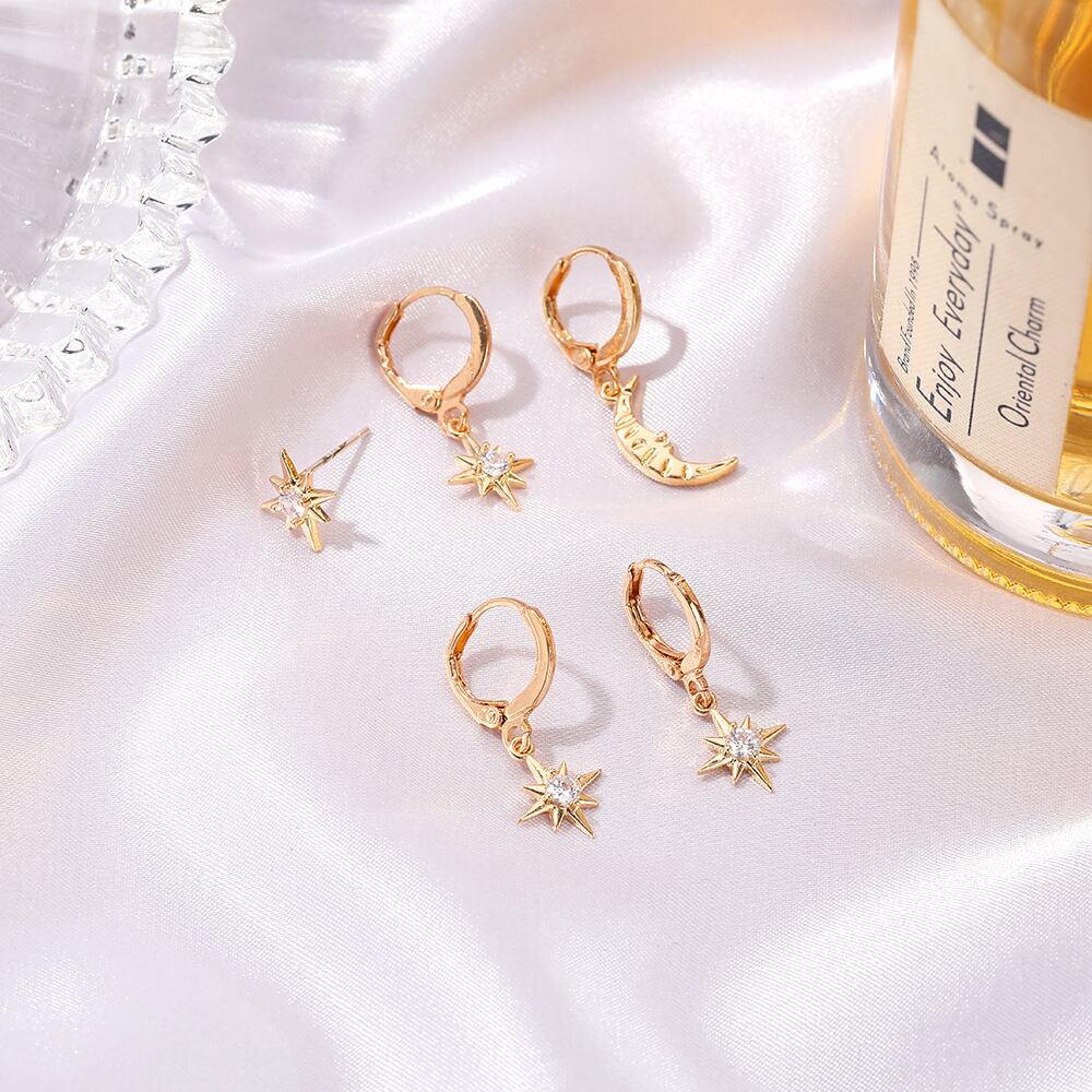 送料無料 LATS 2020 Clic GeometricWomenDangleイヤリングスターとムーンジュエリーの非対称イヤリング 指輪 アクセサリー AE332221139494613644