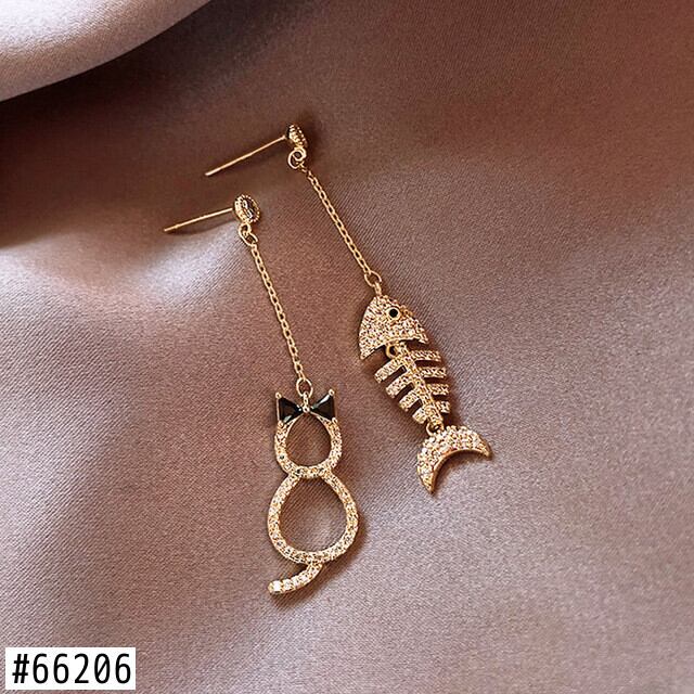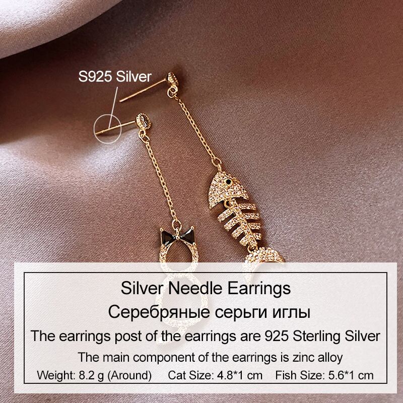 送料無料 LATS猫と魚の骨ロングダングルピアスシンプルなイヤリング女性2020ジュエリーDorpイヤリングアクセサリー 指輪 アクセサリー AE332221139950596540