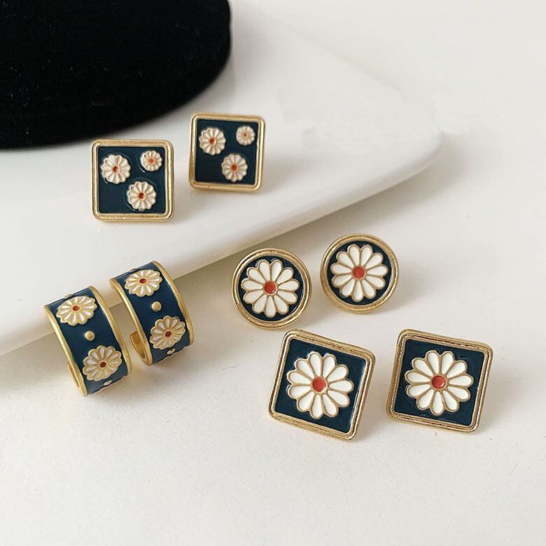 送料無料 LATSクリカルエナメルエンボスフラワースタッドピアスヴィンテージスモールデイジーピアス女性2020Brincoskolczykiジュエリー イヤリング リング 指輪 フラワーデザイン ビンテージ アクセサリー AE332221142625427170