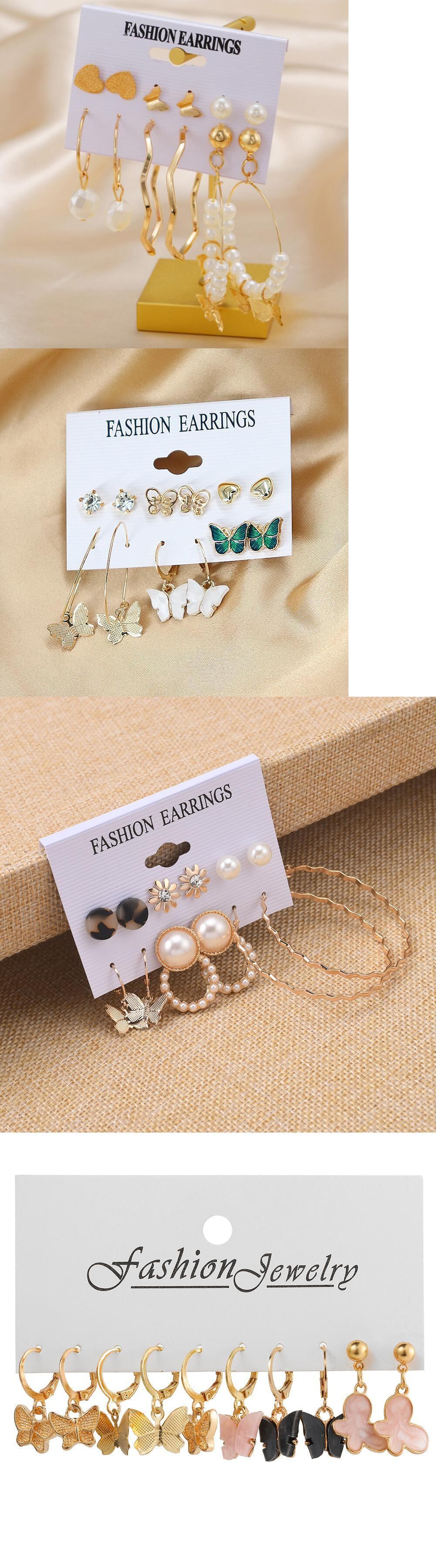 送料無料 LATSトレンディゴールドシルバーカラーバタフライフープピアスセット女性スネークパールレジンフープピアスかわいいブリンコスパーティージュエリー イヤリング 大人ガーリー スウィート キュート カジュアル 真珠 リング 指輪 銀 アクセサリー AE332221192333760024