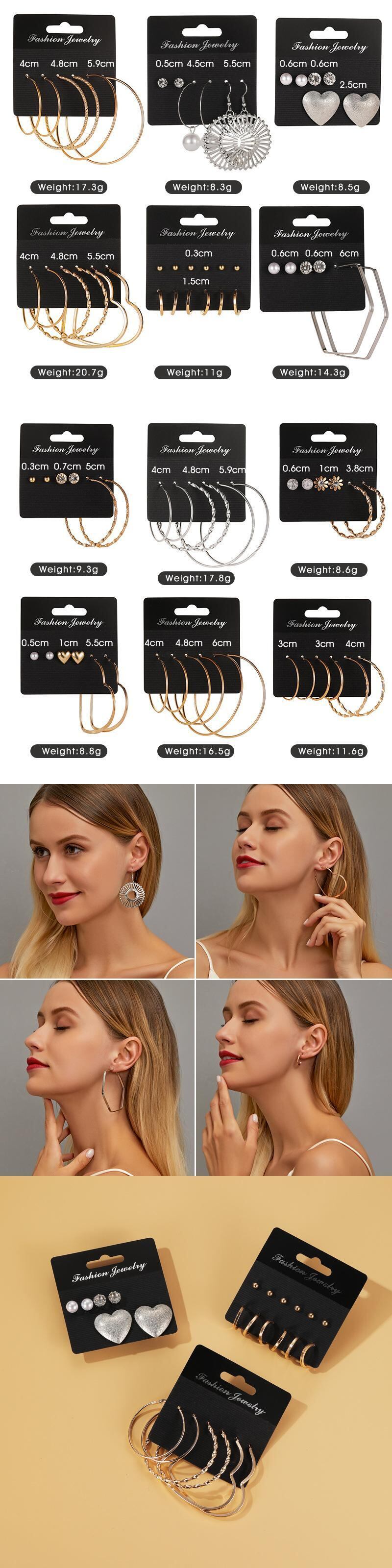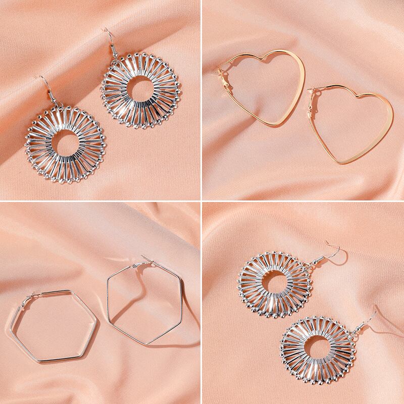 送料無料 LATSレディースイヤリングセットハートサークルピアスレディースメタル幾何学ダングルピアス2020ブリンコスボヘミアンジュエリー 指輪 アクセサリー AE332221176427902889