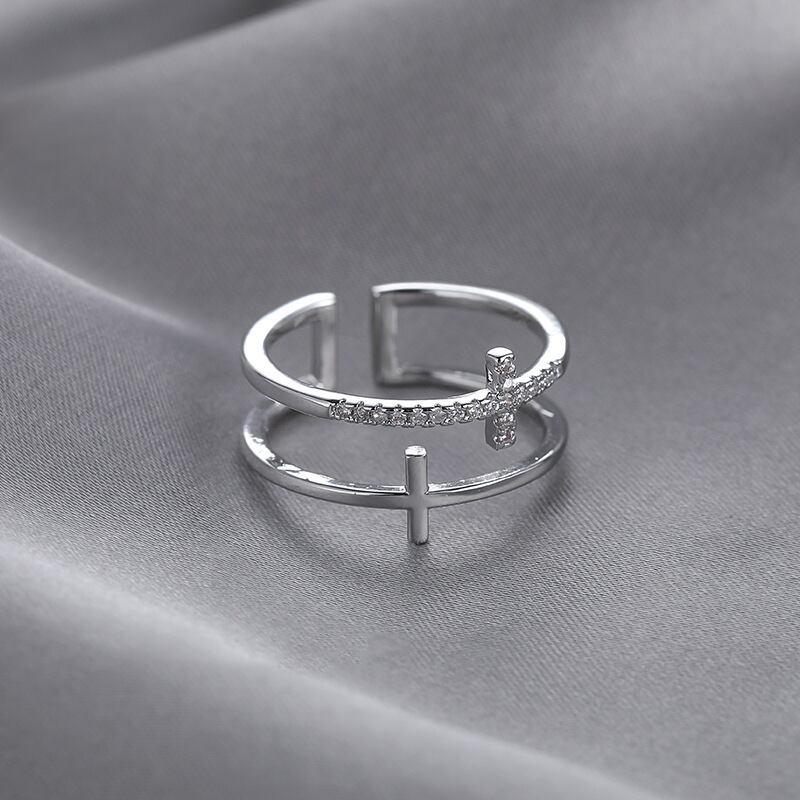 送料無料 LATSシルバーカラーダブルクロス点滅ジルコンオープンリングレディース学生インデックスフィンガーリング2022ジュエリー 指輪 銀 アクセサリー AE332221126323617638