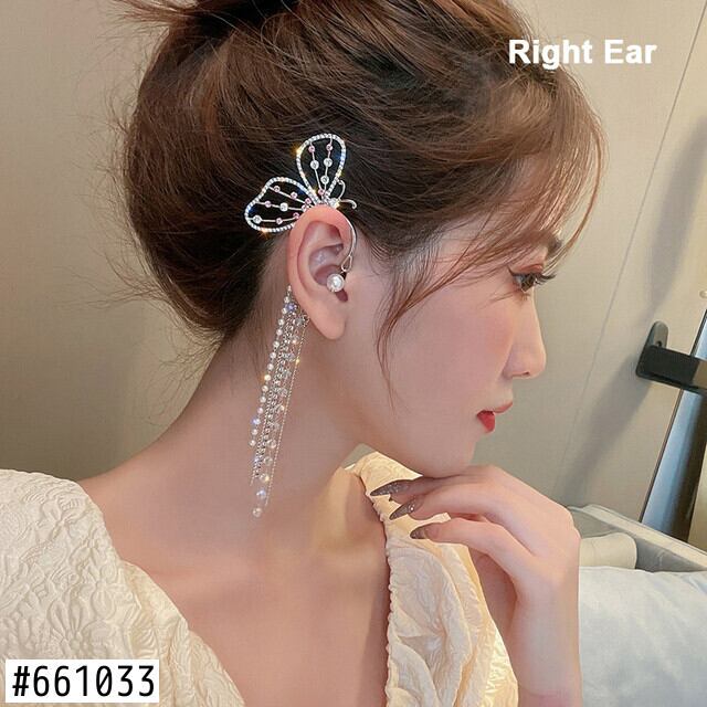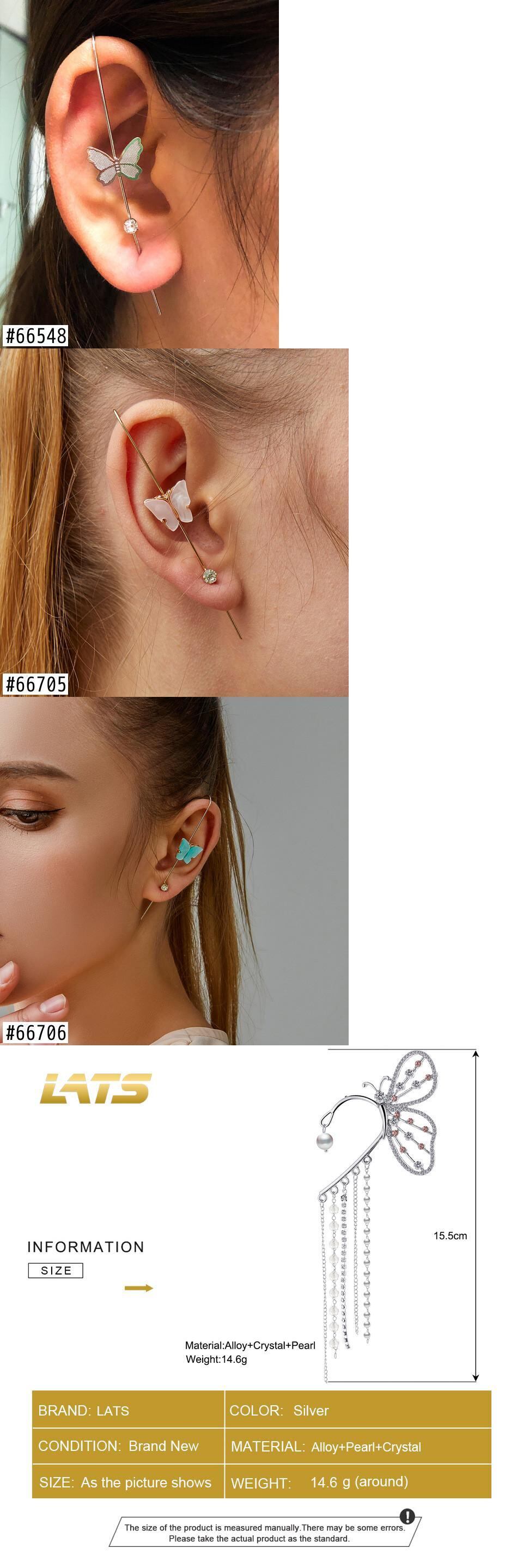 送料無料 LATSクリスタルバタフライクリップイヤリング女性パールビーズイヤーカフロングテルスチャーム中空イヤリングクリップジュエリーギフト 真珠 指輪 アクセサリー AE332221176415467563
