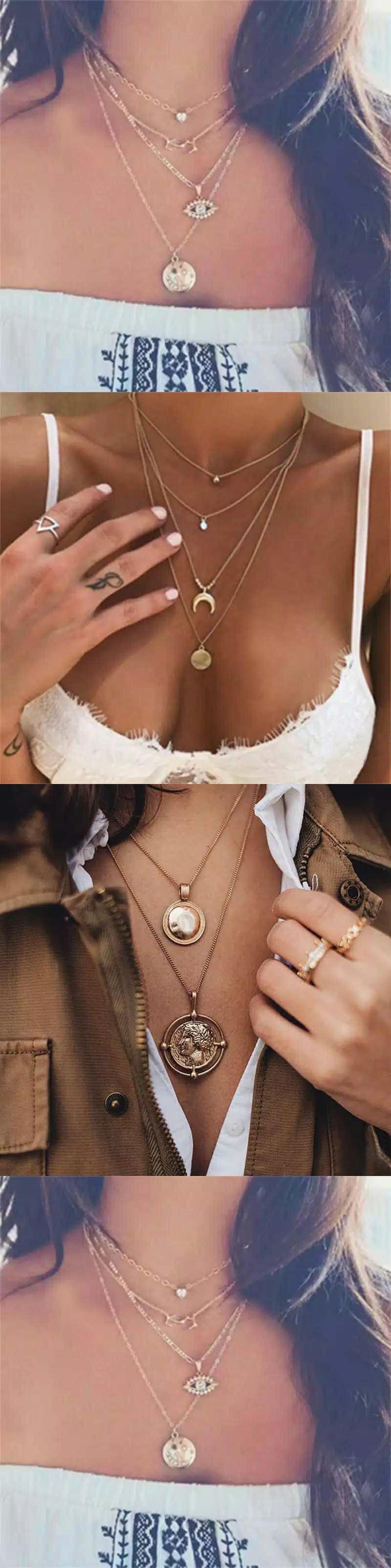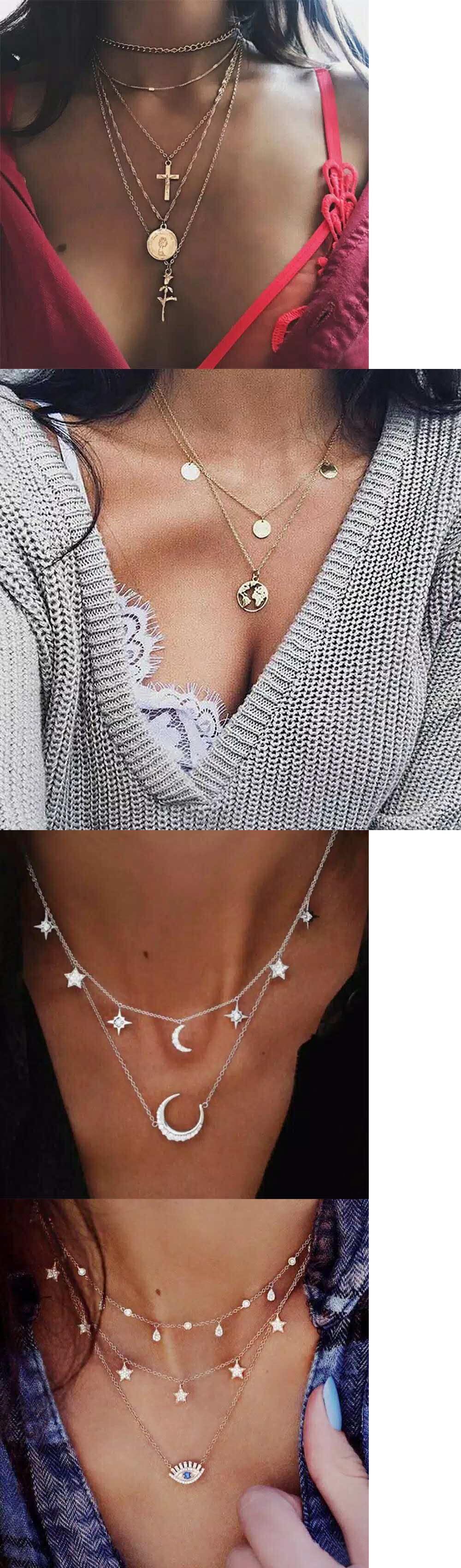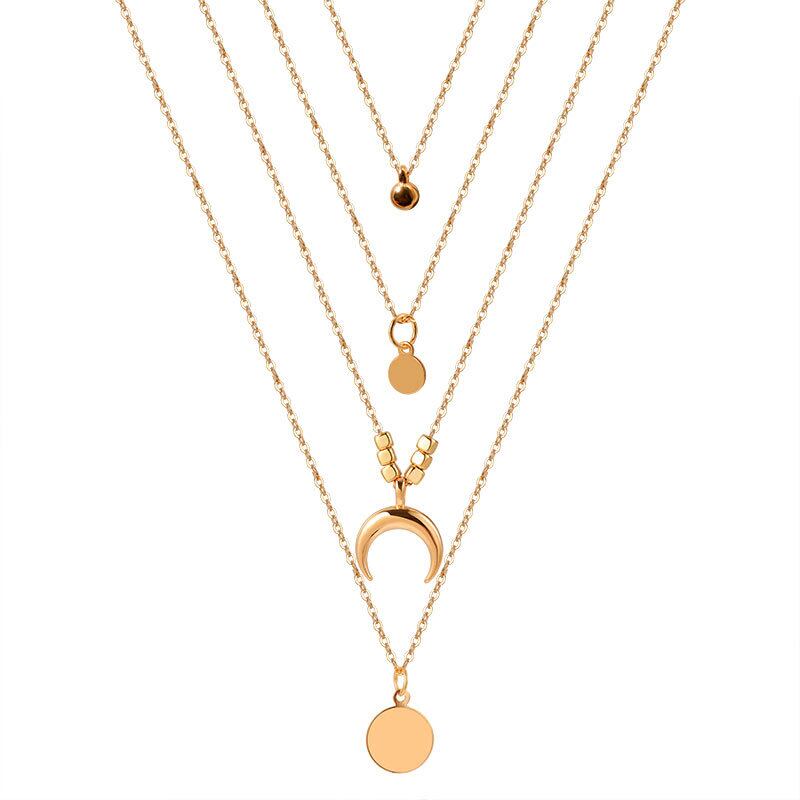 送料無料 LATSゴールドカラーチョーカーネックレス女性マルチレイヤーロングムーンテルペンダントチェーンネックレス&ペンダントチョーカージュエリー レース アクセサリー AE332221178062572307