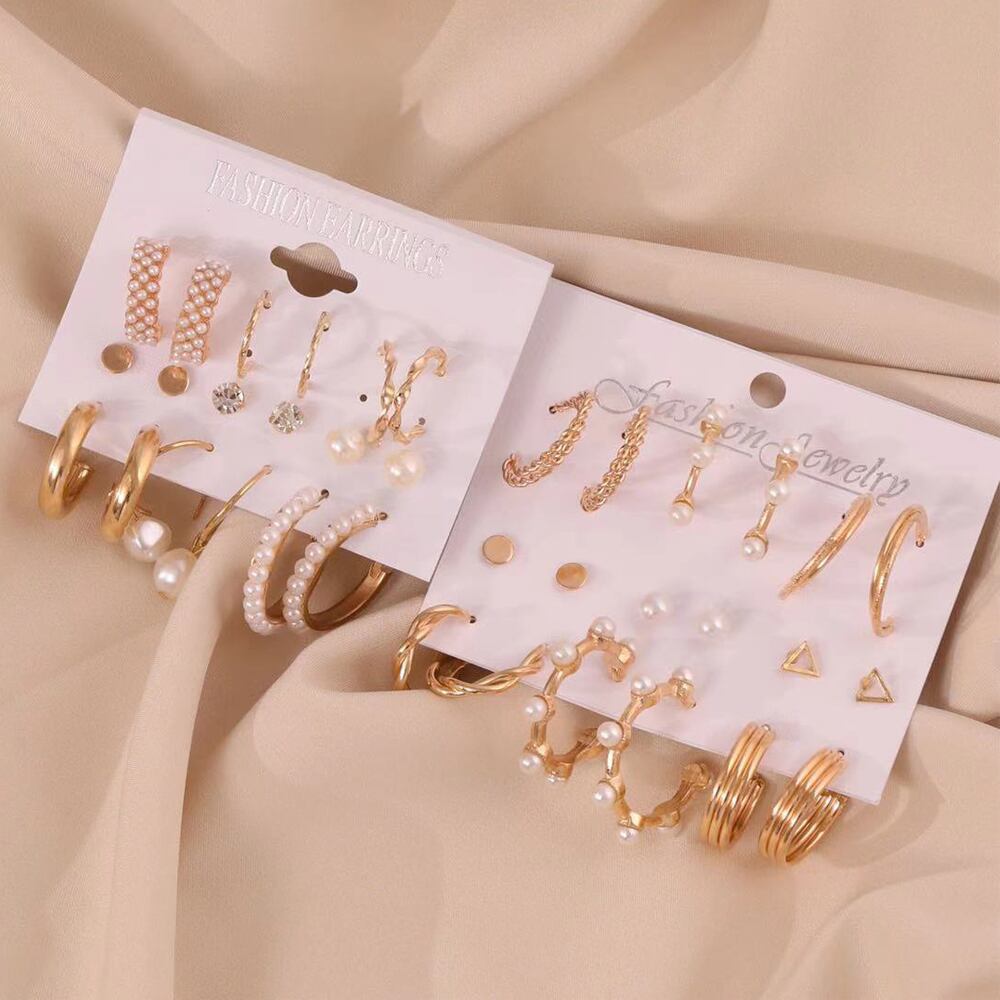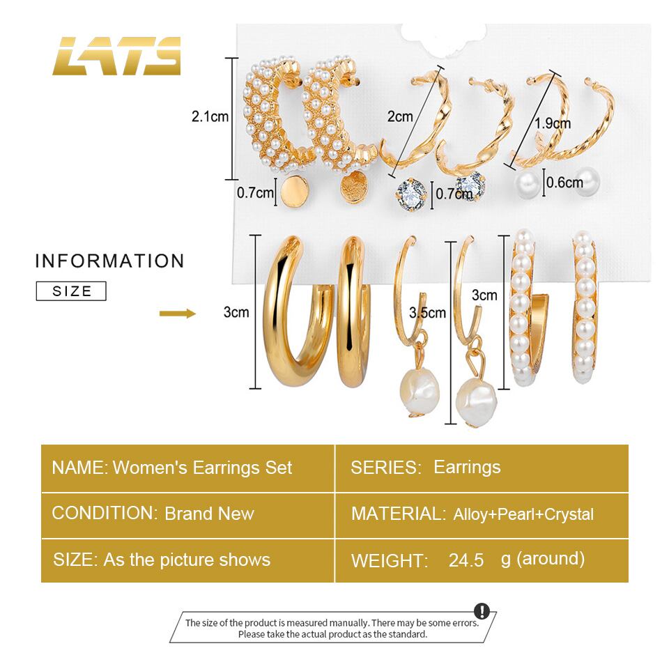 送料無料 LATSレディースイヤリングセットパールフープピアスレディースGeometircゴールドサークルピアス2021トレンドジュエリーギフト 真珠 指輪 アクセサリー AE332221186196442830