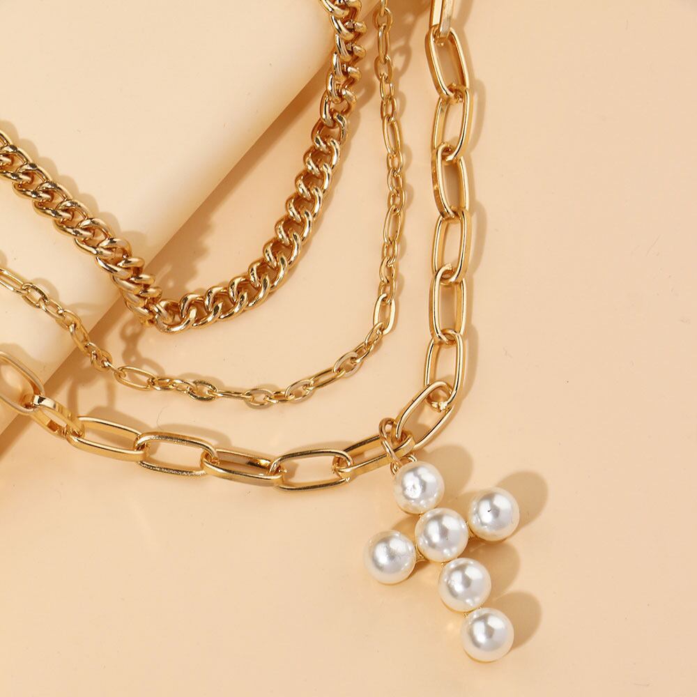 送料無料 LATSヴィンテージマルチレイヤーパールクロスネックレス女性シンプル銅チェーンスタッキングバンドチョーカーネックレスジュエリーギフト レース 真珠 ビンテージ アクセサリー AE332221161761015427