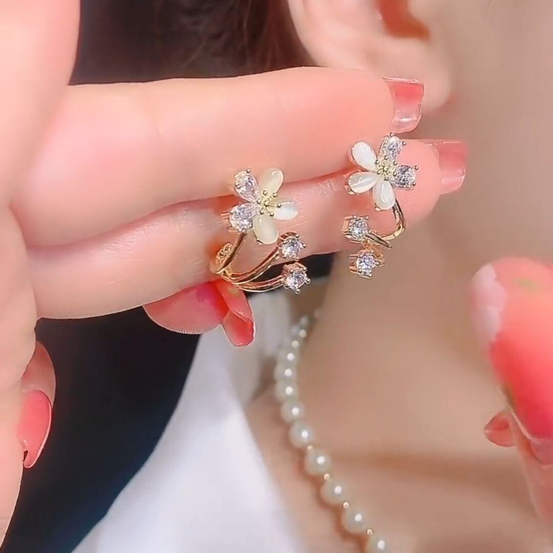 送料無料 LATS2022ゴールドジルコンオパールチェリーブロッサムイヤリング女性ライトラグジュアリーフラワースタッドピアスジュエリーギフト 蛋白石 指輪 フラワーデザイン アクセサリー AE332221148303475447