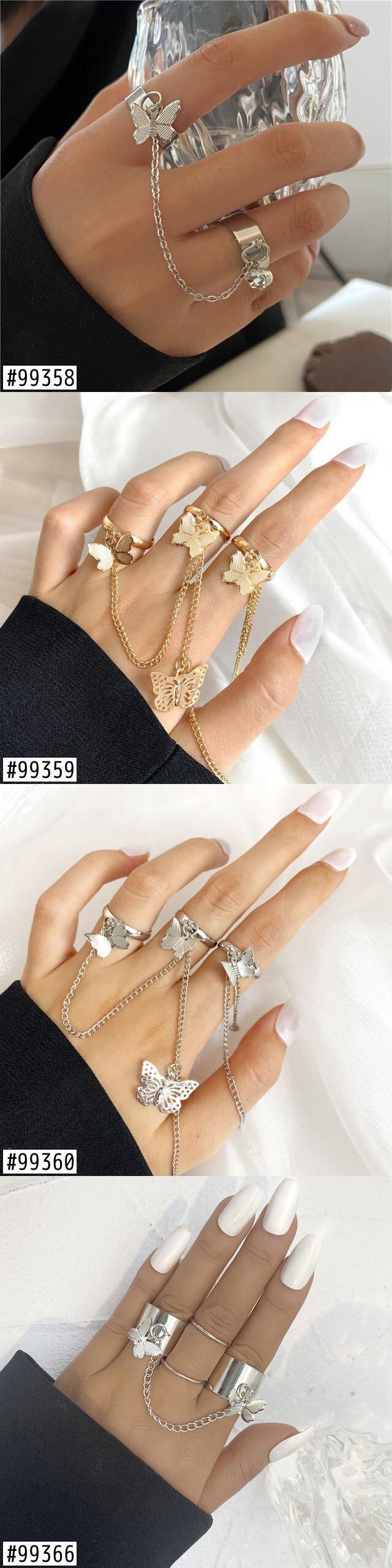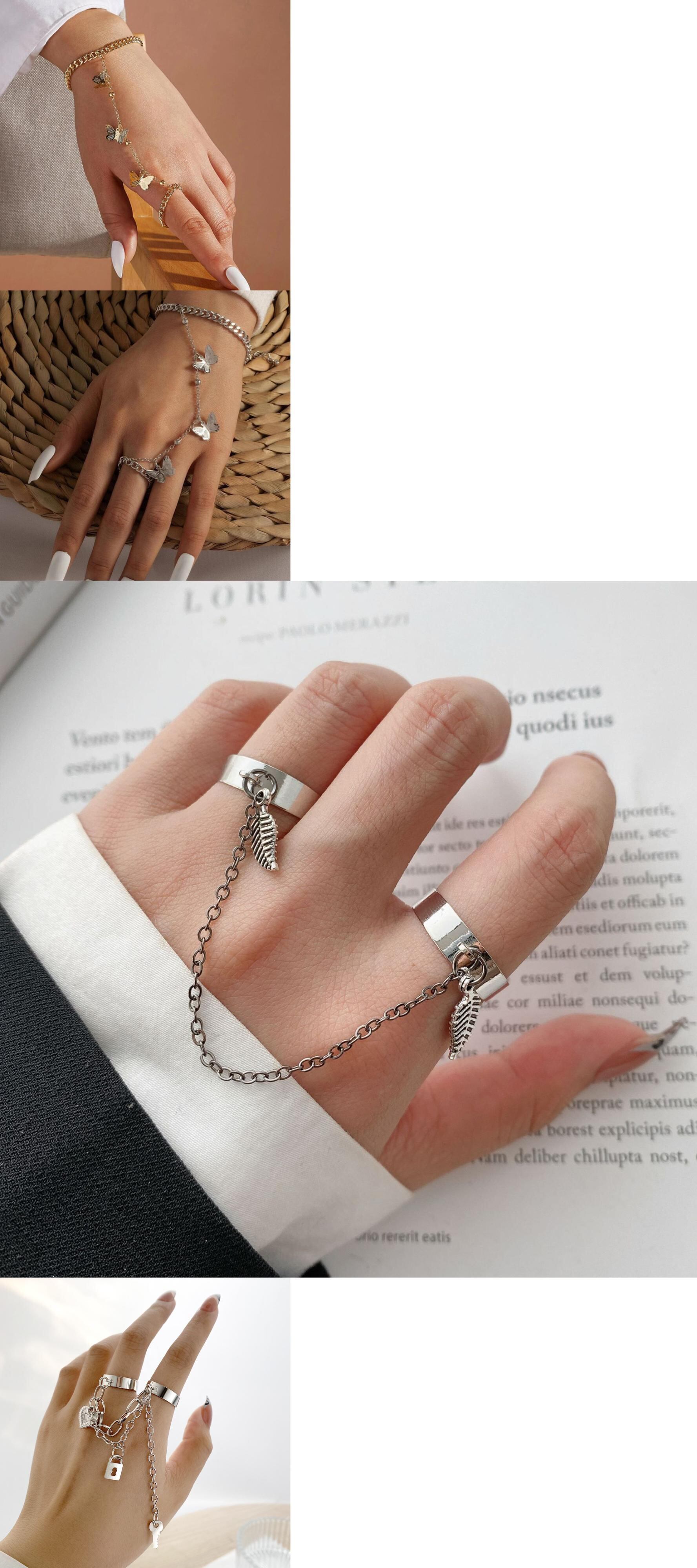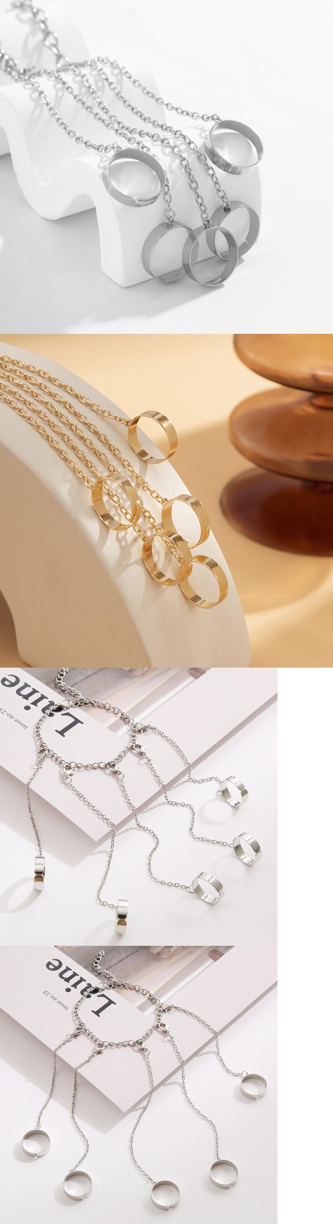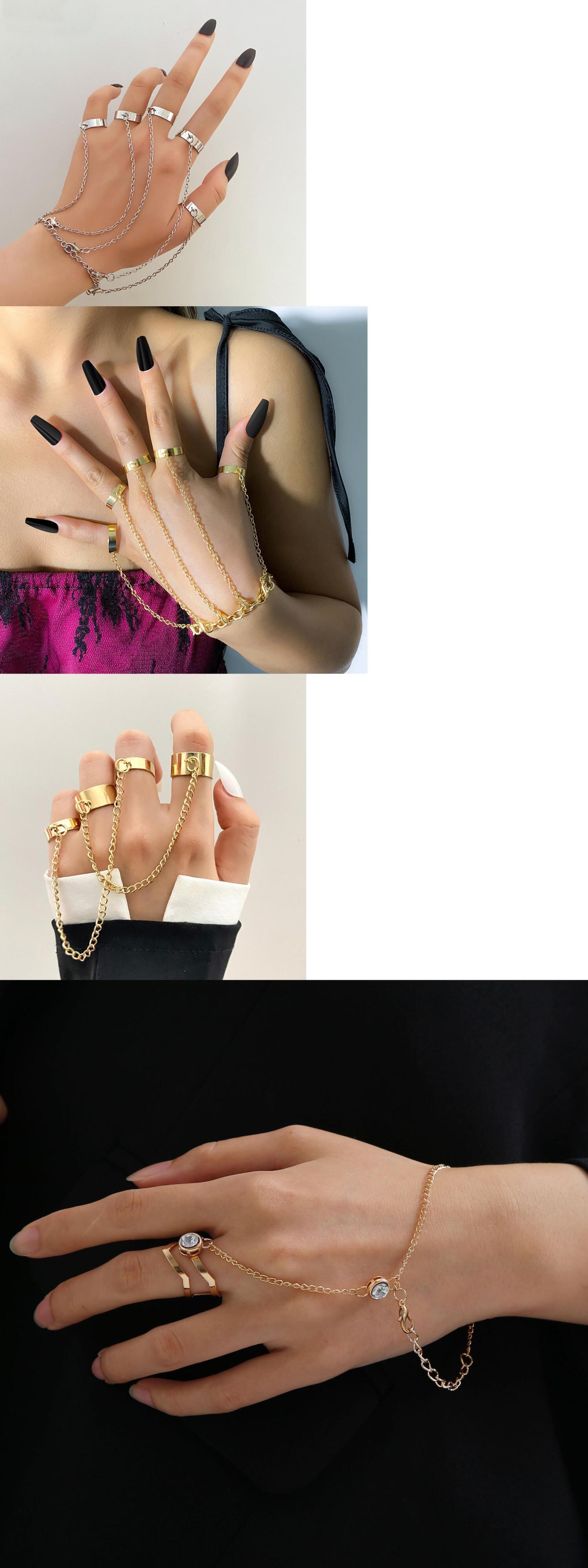 送料無料 LATSパンクゴールドシルバーカラーチェーンリストブレスレットリング女性男性チャームセットカップルエモ取り外し可能リング2022ジュエリー 指輪 銀 アクセサリー AE332221174413009343
