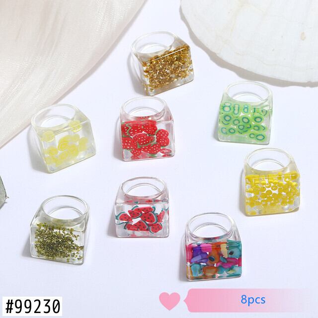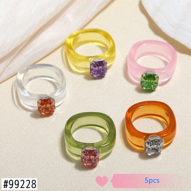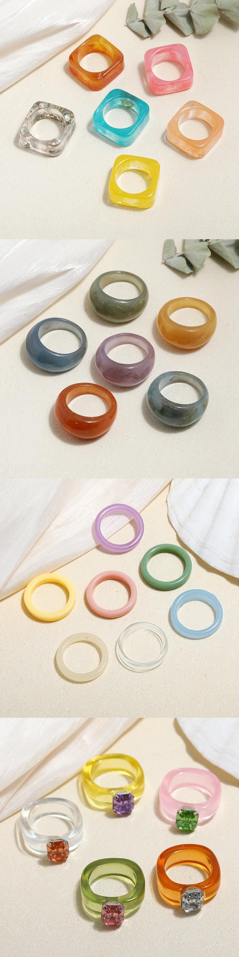 送料無料 LATS8個/セット透明樹脂アクリルラインストーンカラフルな幾何学的な正方形のラウンドリングセット女性2021ジュエリーギフト 指輪 スクウェア アクセサリー AE332221166325625768