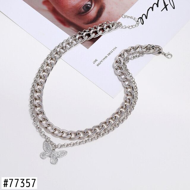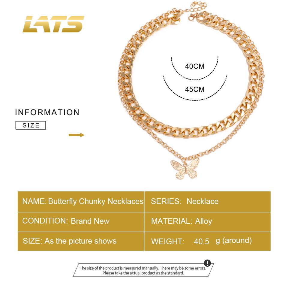 送料無料 LATSヴィンテージマルチレイヤーペンダントバタフライネックレスレディースゴールドシルバーカラーチャンキーチェーンチョーカーネックレスジュエリー レース 銀 ビンテージ アクセサリー AE332221111592420232
