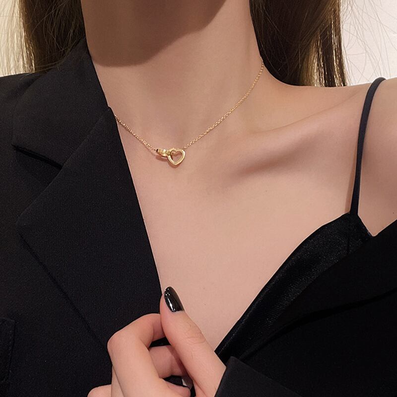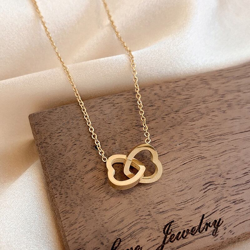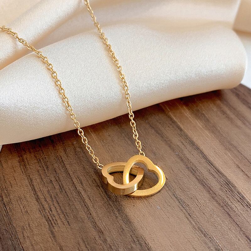 送料無料 LATS2022クリエイティブクロスダブルラブチタンスチールネックレス女性の女の子気質鎖骨チェーンネックレスジュエリー レース アクセサリー AE33222118951989737