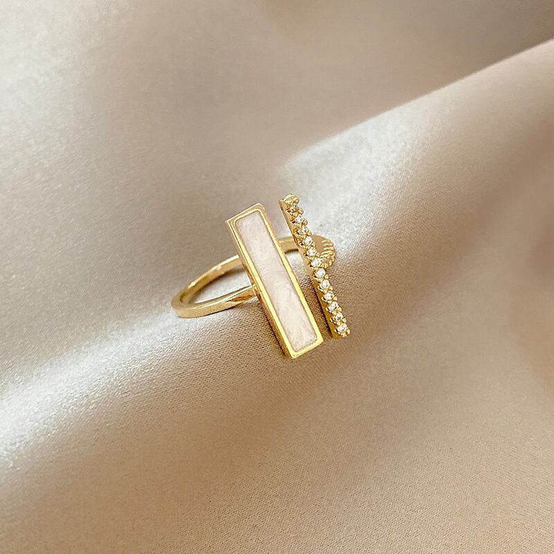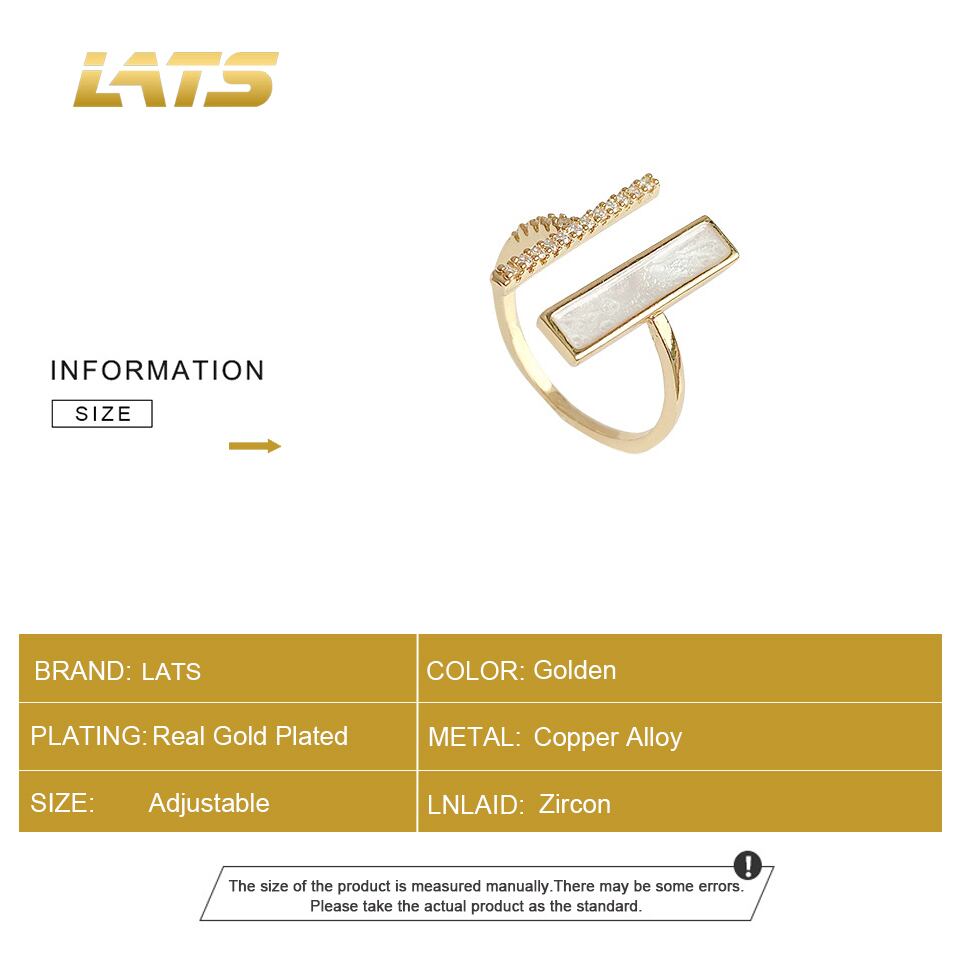 送料無料 LATSトレンディスクエアワンワードジルコンリングレディースシンプルエンドオープンインデックスフィンガーリング2022ジュエリー 指輪 スクウェア アクセサリー AE33222114895855770