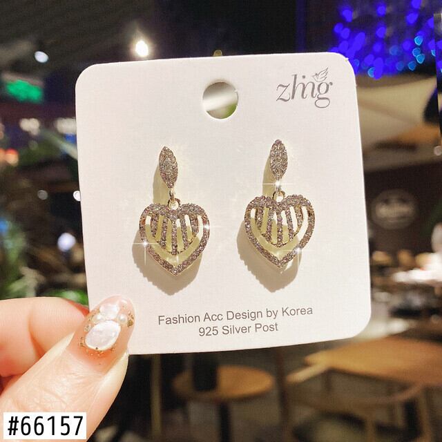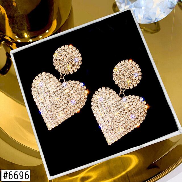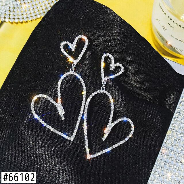 送料無料 LATSハートイヤリングレディース豪華な幾何学的なフルラインストーンイヤリングゴールド/シルバーカラーラブ2020ジュエリー 指輪 銀 アクセサリー AE332221134016913377