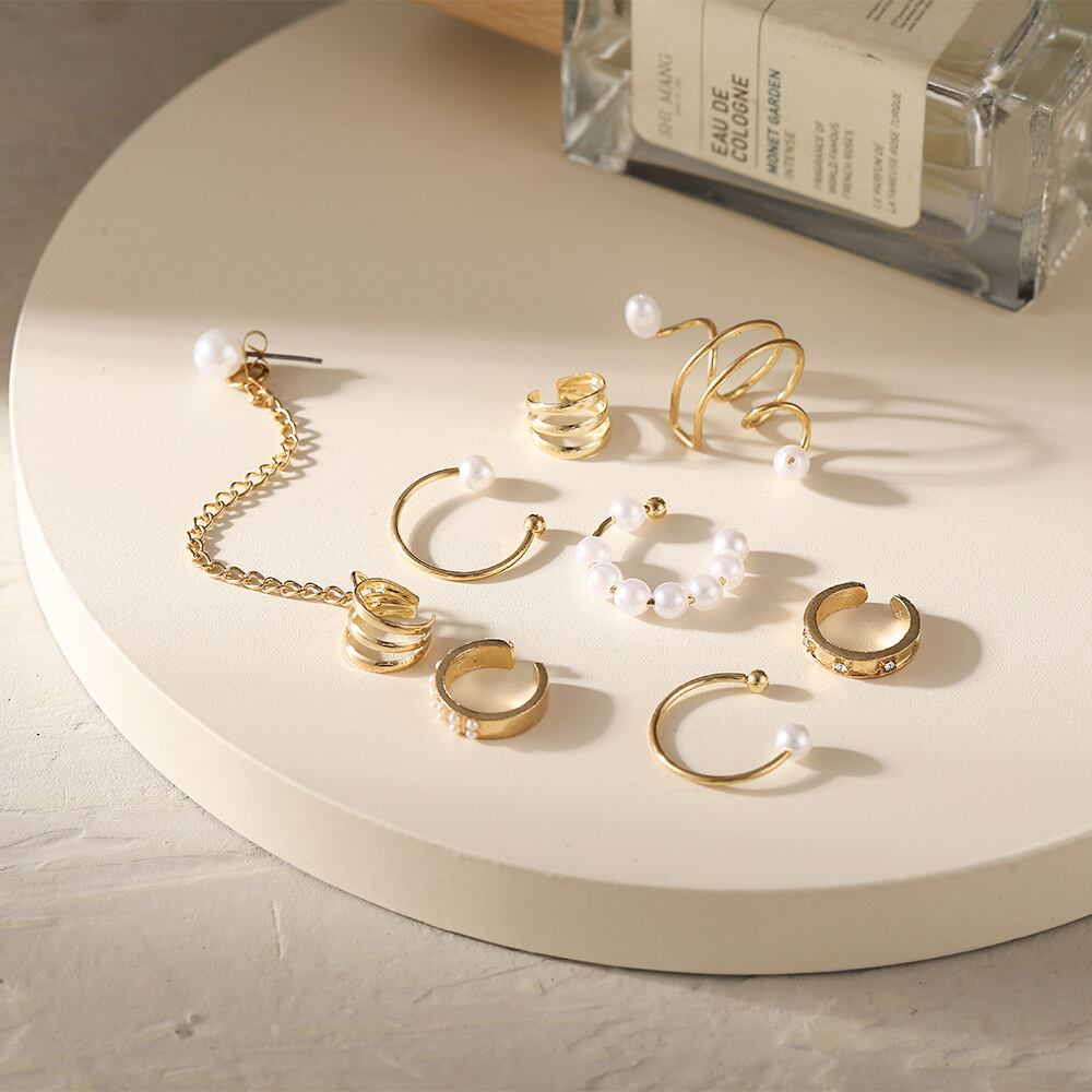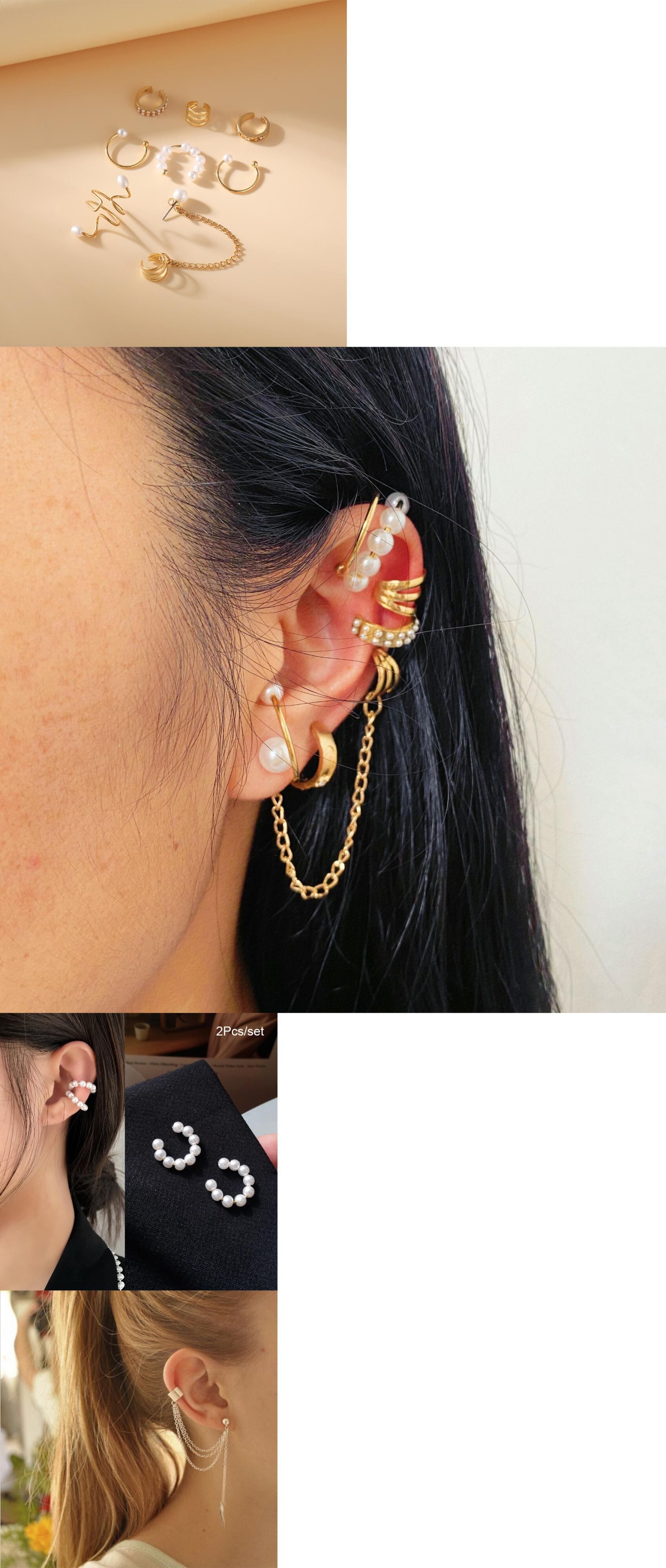 送料無料 LATS8ピースパールTelクリップイヤリングピアス耳のない女性骨クリップパール耳クリップセット2022ジュエリー 真珠 指輪 アクセサリー AE332221180086602654