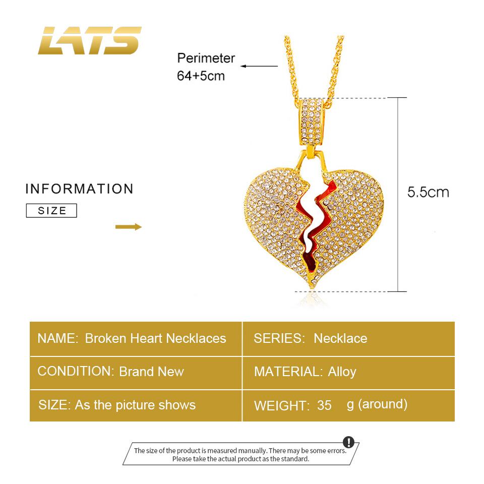 送料無料 LATSヒップホップブロークンハートネックレスユニセックスラインストーンクラッキングラブレディースメンズビッグペンダントネックレスジュエリーギフト レース アクセサリー AE332221189440689086