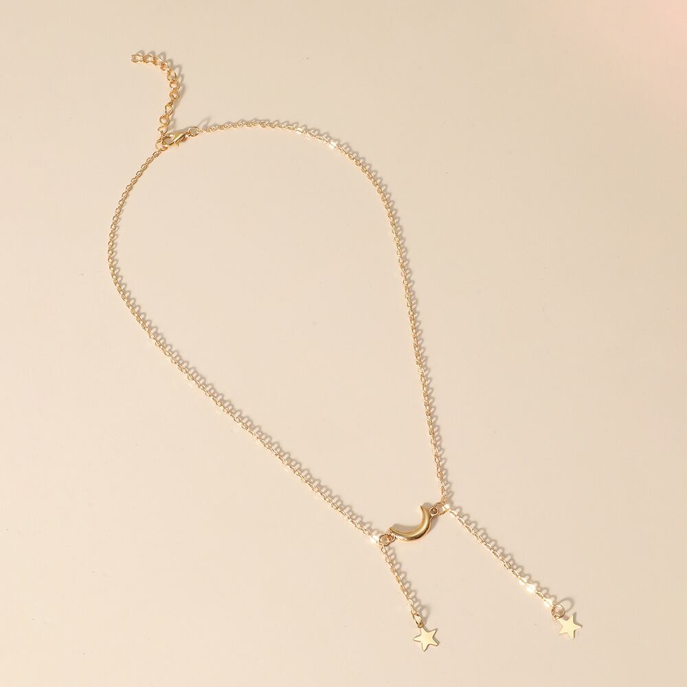 送料無料 LATSゴールドカラースタームーンネックレスWomenInsシンプルな鎖骨チェーンペンダントネックレスジュエリー レース アクセサリー AE332221143666001865