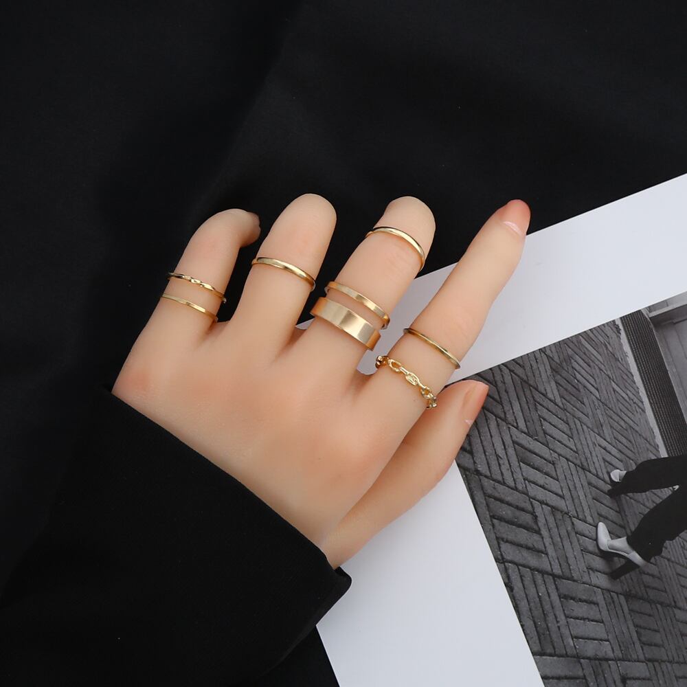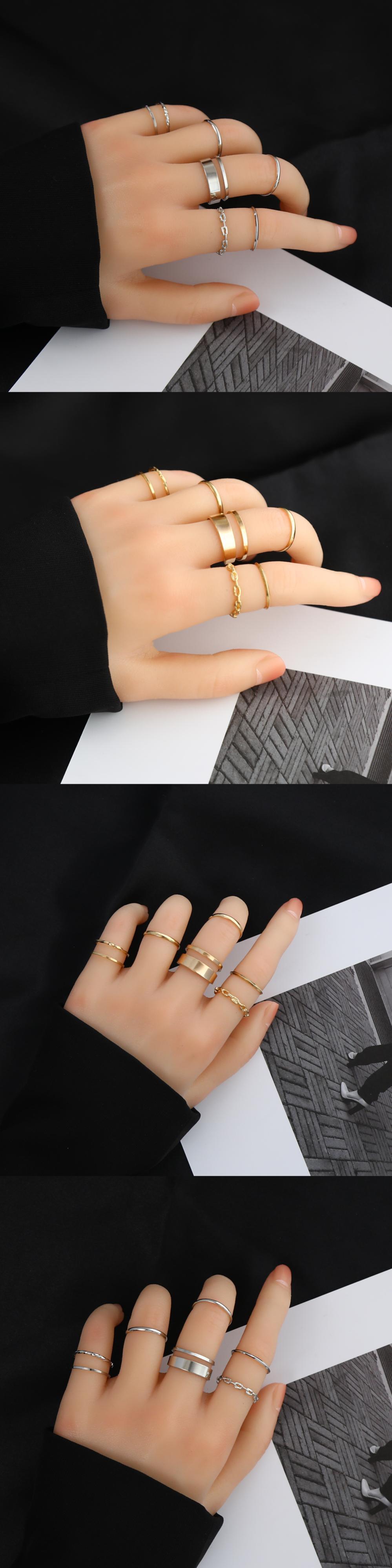 送料無料 LATS7個パンクツイストジョイントリングセット女性ヒップホップミニマリストゴールドシルバーカラー幾何学的なリングパーティージュエリーギフト 指輪 銀 アクセサリー AE332221153662207266
