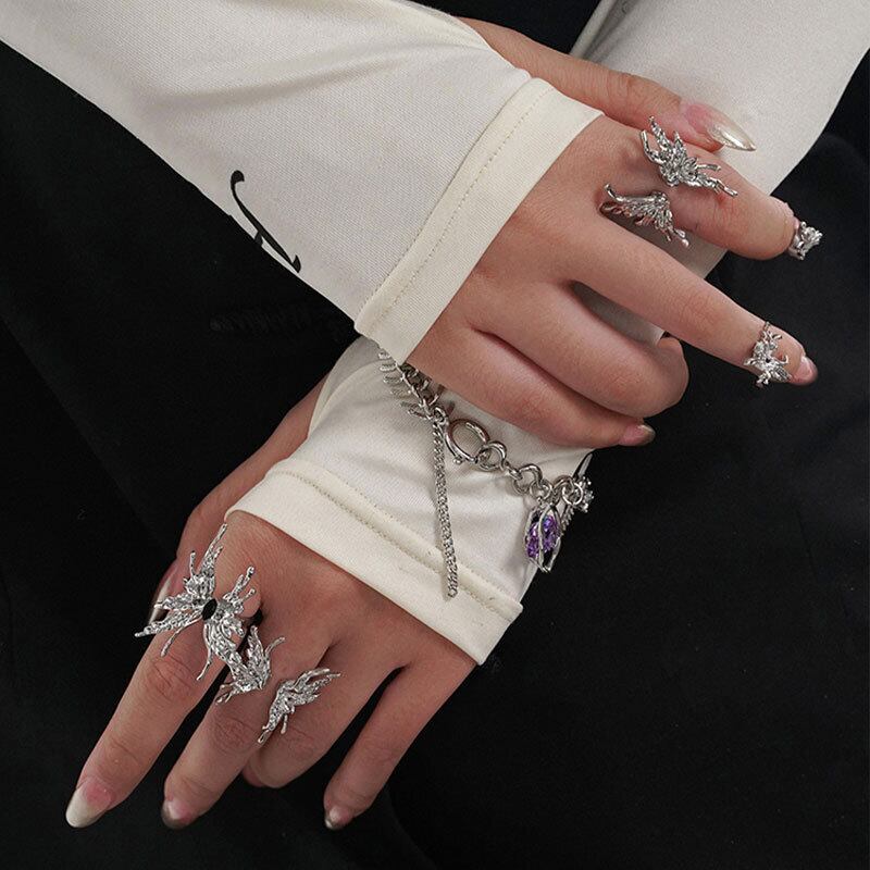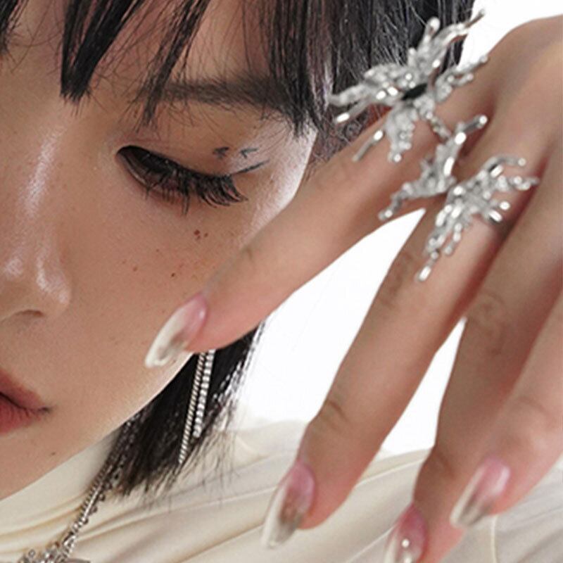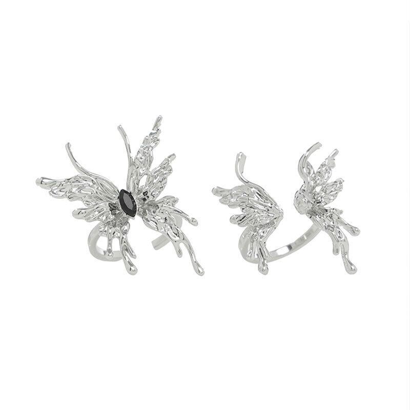送料無料 LATSパンクミューテーションリキッドバタフライリングレディースシルバーカラークールヒップホップメタルカップルオープンリングジュエリー 指輪 銀 アクセサリー AE332221186361804935