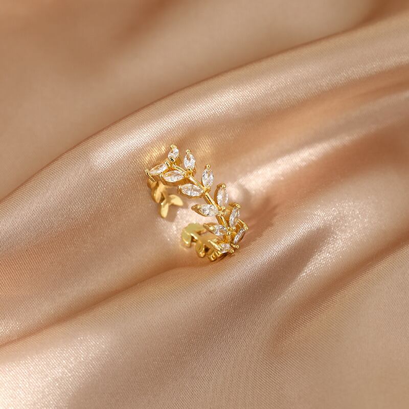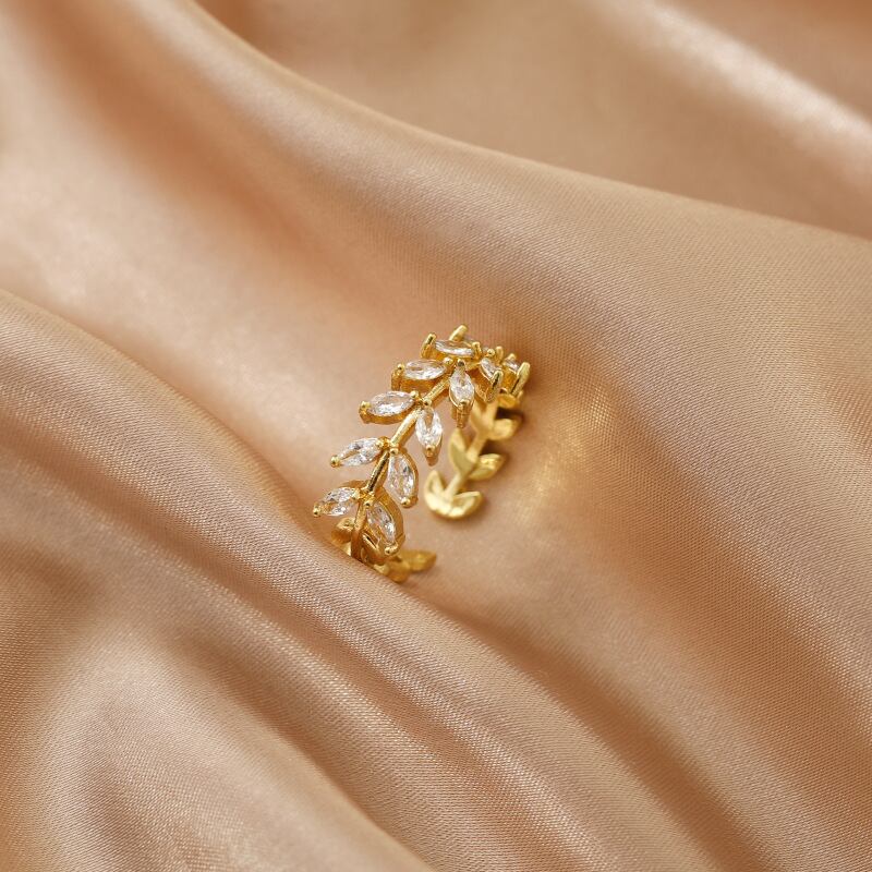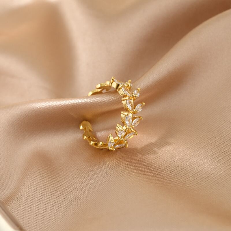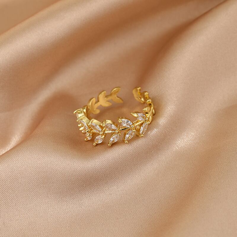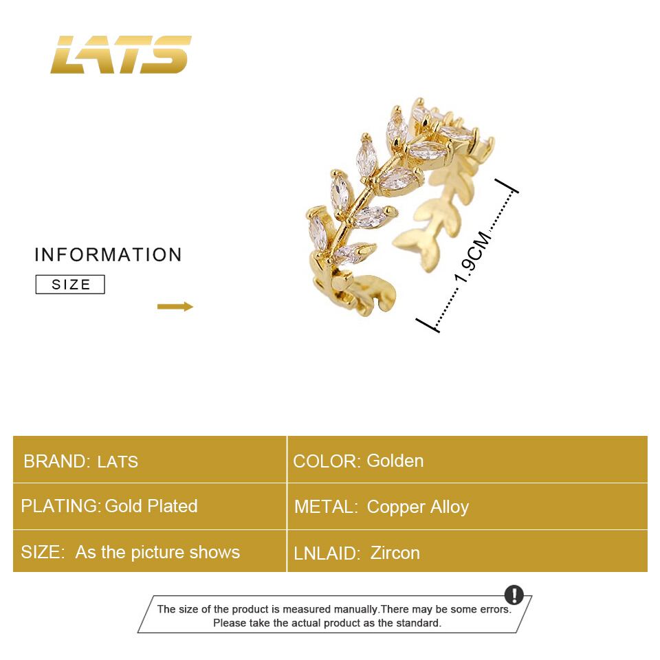 送料無料 LATSラグジュアリーゴールドメッキジルコンリーフリングシンプルプレミアムセンスインデックスフィンガーリングトレンドジュエリー結婚披露宴ギフト 指輪 アクセサリー AE33222118021739125