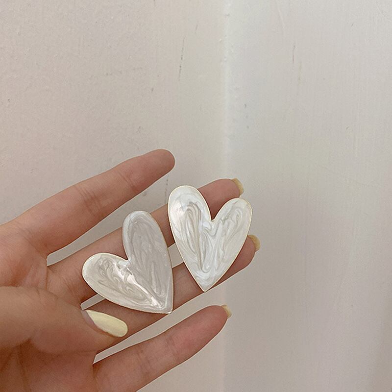 送料無料 LATSホワイトカラービッグハートスタッドピアス女性の女の子愛釉薬美的日常生活ミニマリストイヤリングジュエリー 指輪 アクセサリー AE332221174798755774