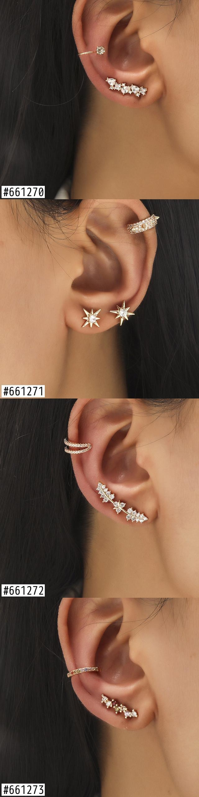 送料無料 LATSスターリーフフラワーイヤーカフ幾何学的なジルコンイヤークリップイヤリングセット女性男性高級イヤリングカフトレンドジュエリー 指輪 フラワーデザイン アクセサリー AE332221173202847435