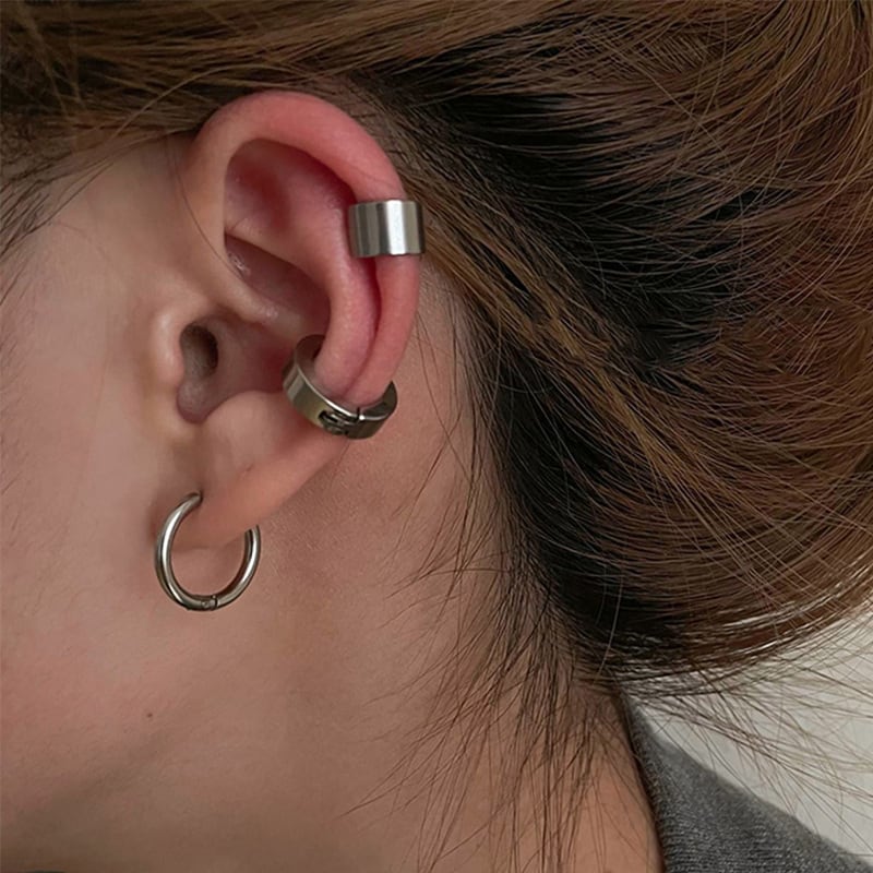 送料無料 LATSパンクステンレススチールイヤリングイヤリング女性男性シルバーカラーフェイクピアスカップルイヤリングカフ2022ジュエリー 指輪 銀 アクセサリー AE332221145909826128