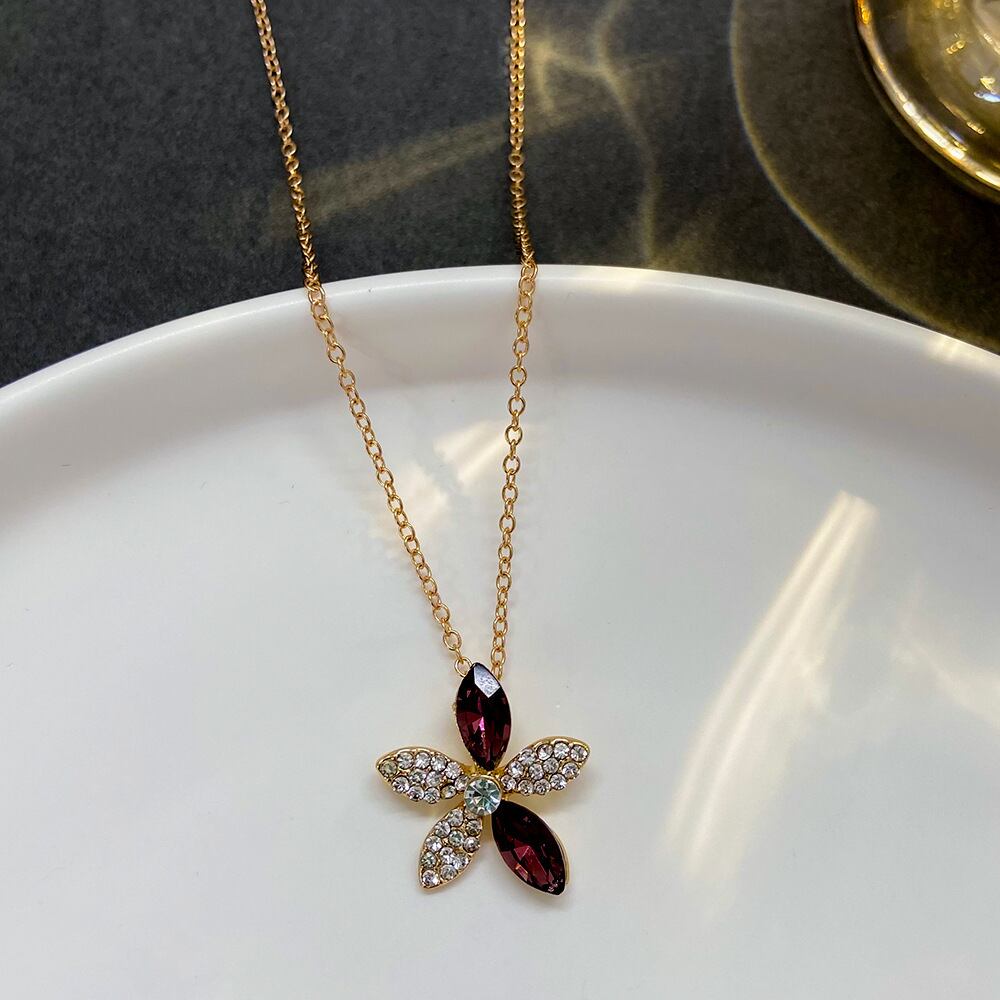 送料無料 LATSレトロジルコン幾何学ネックレスフラワーウォーターペンダントクラビクルチェーンネックレス女性2022トレンドジュエリー レース フラワーデザイン アクセサリー AE332221182750501351