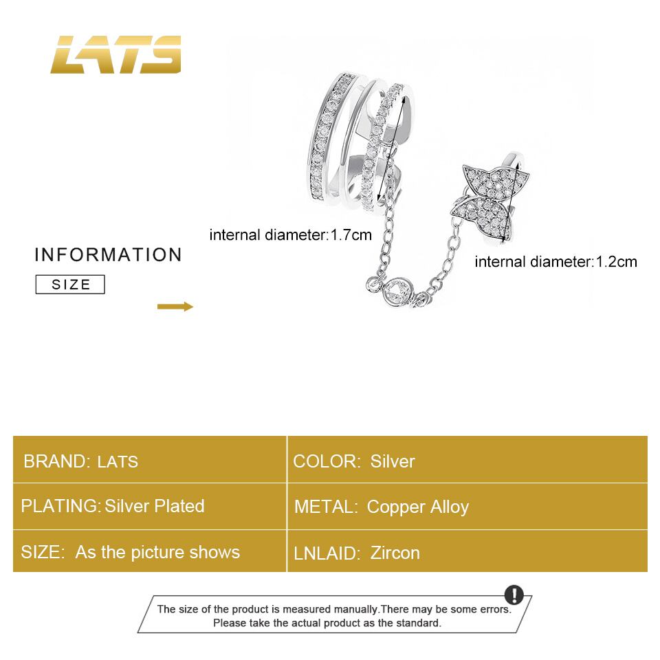 送料無料 LATSテルチェーンリンクジルコンバタフライリングレディースシルバーカラーマルチレイヤーインデックスフィンガーリング2022ジュエリー 指輪 銀 アクセサリー AE332221198817076101