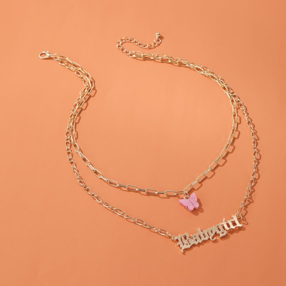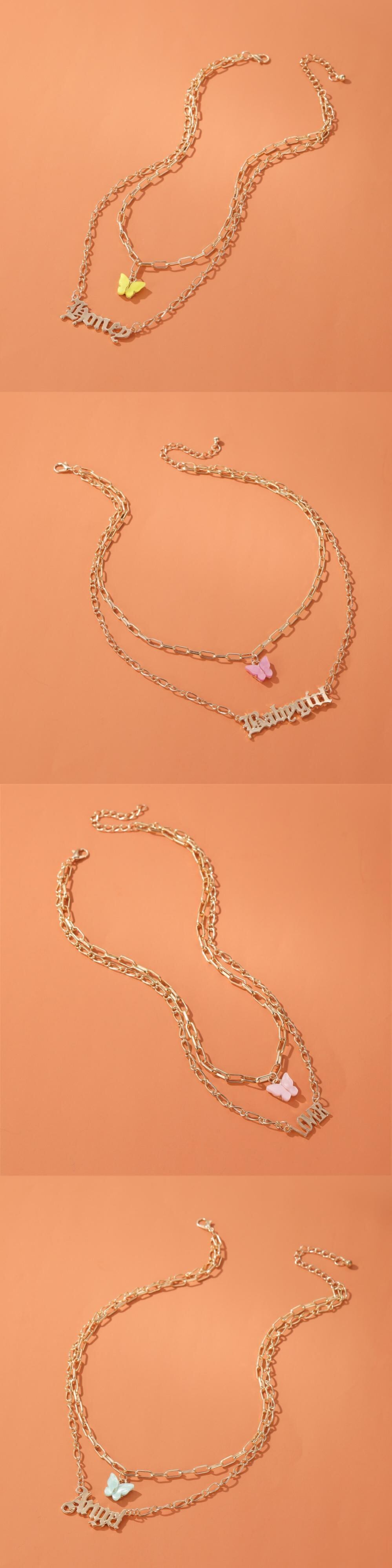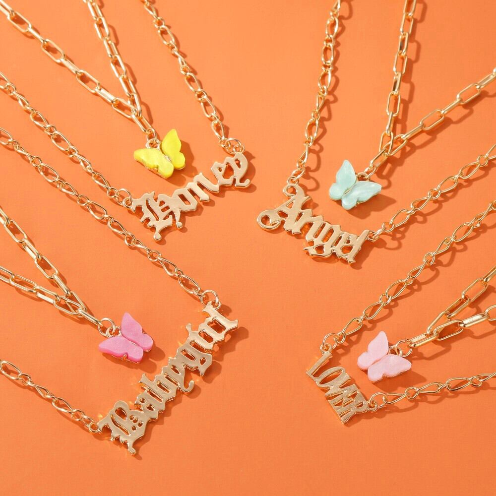 送料無料 LATSかわいい名前の手紙ネックレス女性多層アクリルバタフライチェーンワード番号ペンダントネックレス2020ジュエリー レース 大人ガーリー スウィート キュート カジュアル マルチレイヤー アクセサリー AE332221172669674705