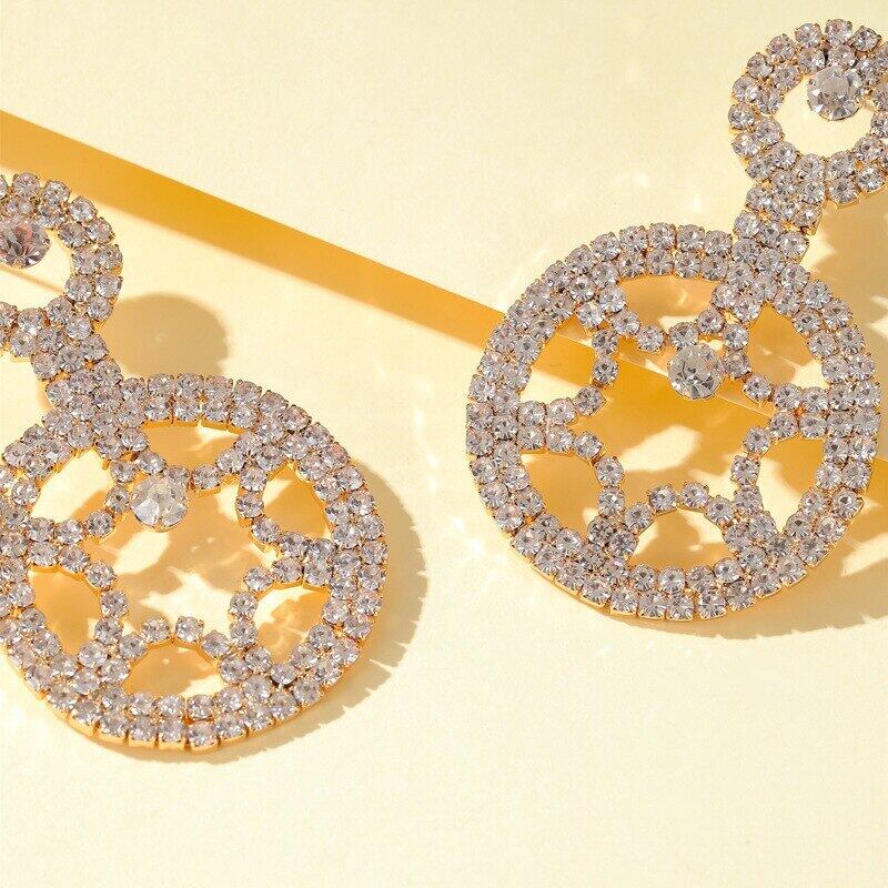 送料無料 LATS誇張されたフルラインストーンラウンドイヤリング女性幾何学的中空ダングルピアス2020KolczykiBrincosジュエリー 指輪 アクセサリー AE332221177922041105