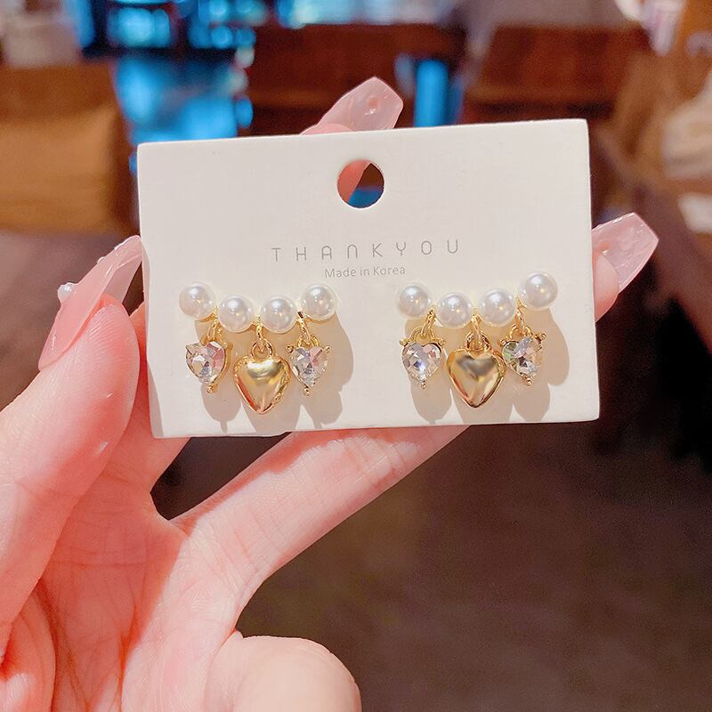 送料無料 LATSゴールド避けられないハートのイヤリング女性ライトラグジュアリーパールイヤリング2022ジュエリーアクセサリーパーティーGft 真珠 指輪 アクセサリー AE332221148905246358