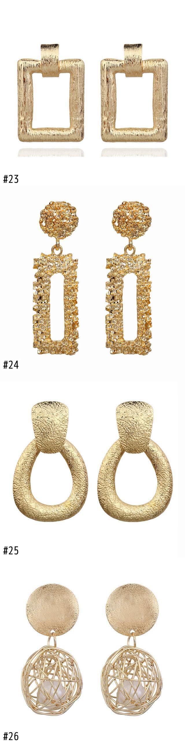 送料無料 2019 est Big Vintage Earrings Women Gold Color Geometric Statement Earring Metal Earing Hanging Jewelry Trend イヤリング リング 指輪 ビンテージ アクセサリー AE332221139304360385