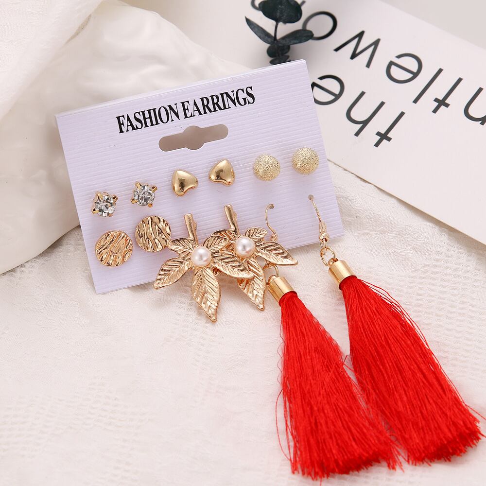 送料無料 ヴィンテージロングテルイヤリング女性2019クロスリーフゴールドパールヒョウアクリルスタッドピアスセット特大ジュエリー 真珠 指輪 ビンテージ アクセサリー AE332221186864858841