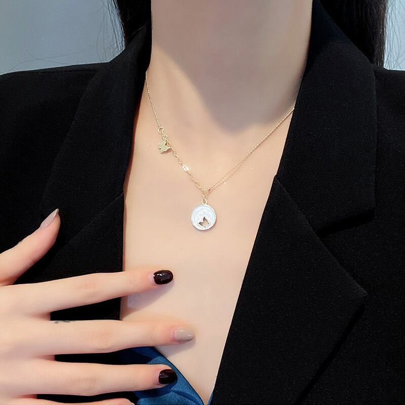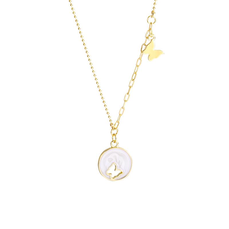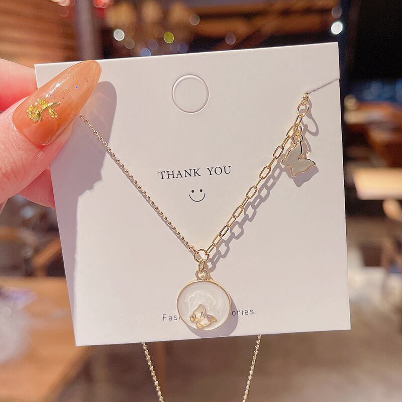 送料無料 LATSラグジュアリードリップオイルサークルホローバタフライペンダントチタンスチールネックレスボウ鎖骨チェーン2022ジュエリー リボン レース アクセサリー AE332221116443319451
