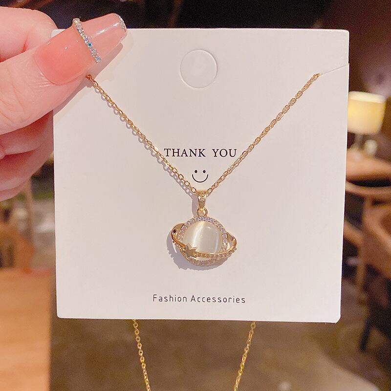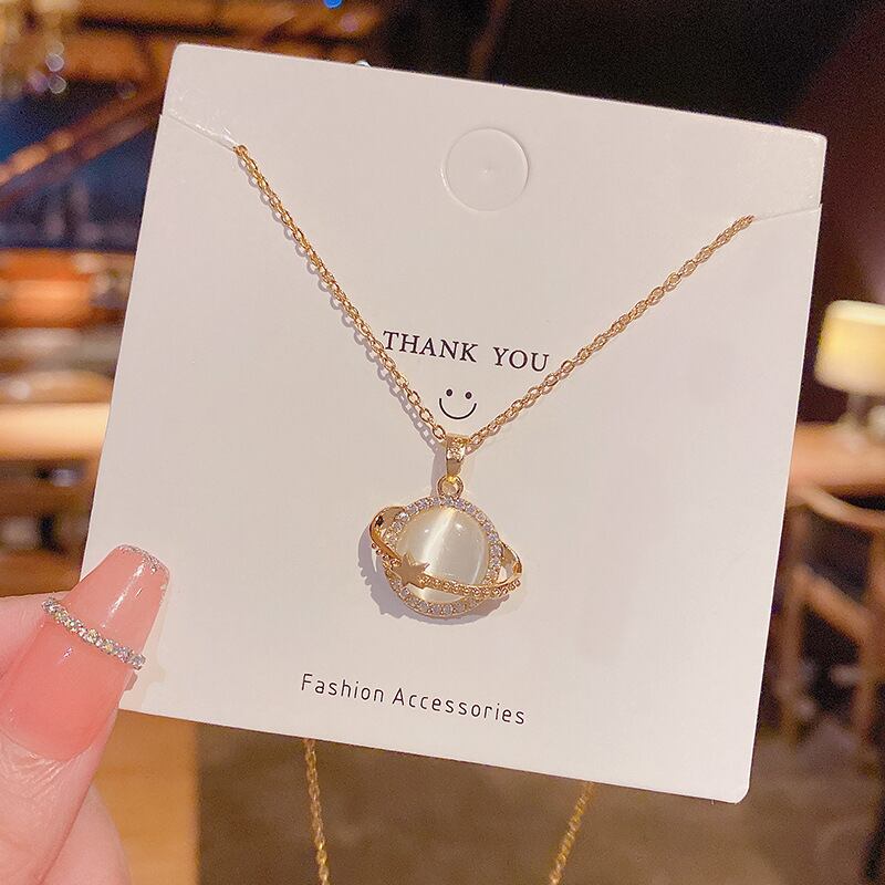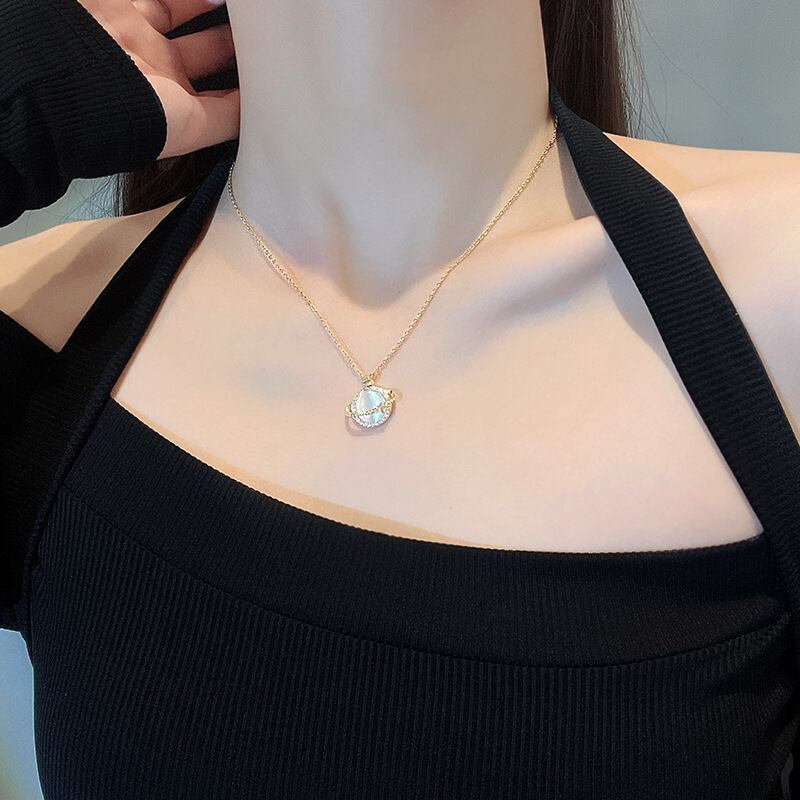 送料無料 LATSリアルゴールドメッキプラネットオパールチタンスチールネックレスレディースシンプルトレンドアドバンスド鎖骨チェーンネックレスジュエリー レース 蛋白石 アクセサリー AE332221118630017029