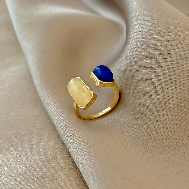 送料無料 LATSライトラグジュアリーフレンチレトロスクエアブルーオイルドリッピングリングテンペラメントシンプルオープニングリング2022レディースジュエリー 指輪 スクウェア アクセサリー AE332221150268141673