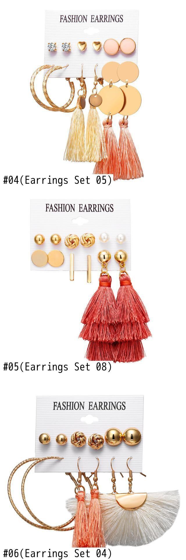 送料無料 ヴィンテージロングテルイヤリングセット女性BOHOテルジオメトリックハートツイストピアス2020DIYボヘミアンジュエリー 指輪 ビンテージ アクセサリー AE332221175946301091