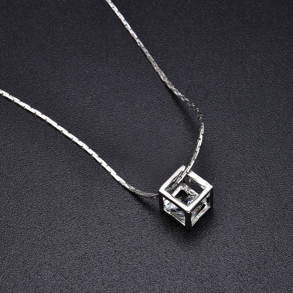 送料無料 LATSトレンディラブスクエアルービックキューブペンダントネックレスレディースヴィンテージラインストーンシルバーカラーネックレスジュエリー レース 銀 スクウェア ビンテージ アクセサリー AE332221188990122197